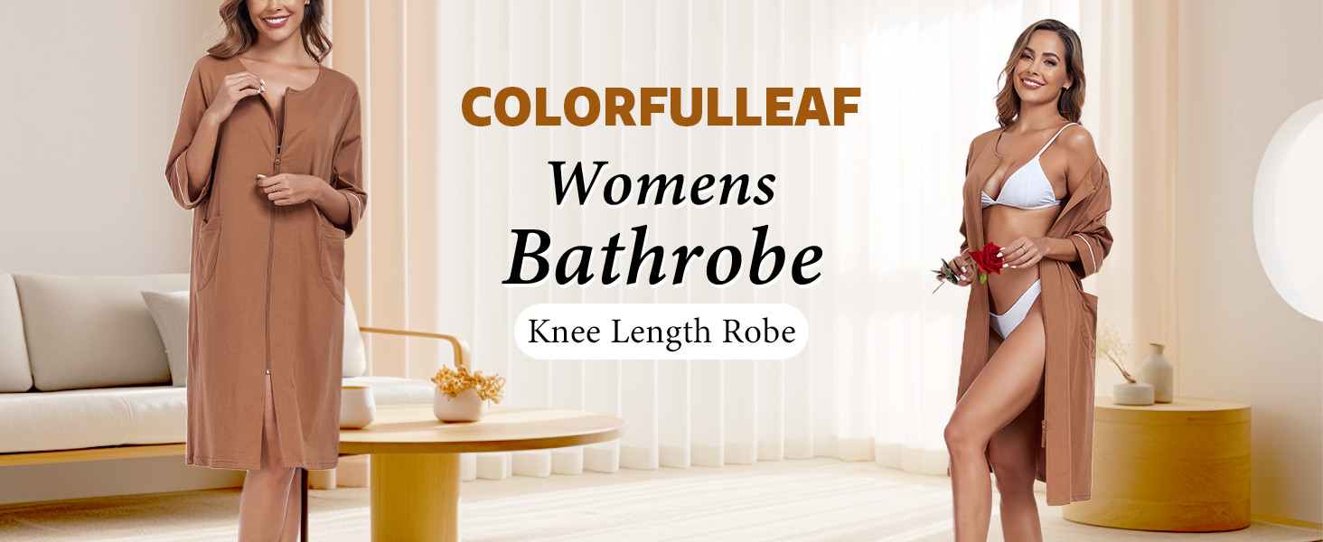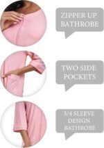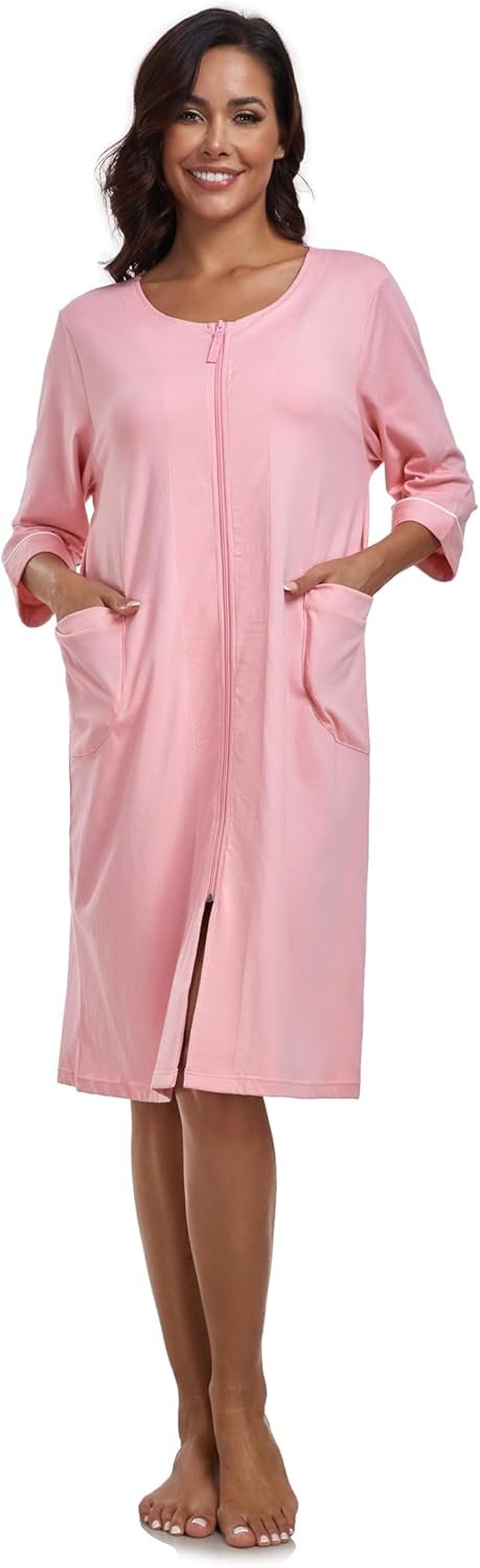 11 مراجعة لـ COLORFULLEAF Ladies’s 100% Cotton Gown Light-weight 3/4 Sleeve Zip Entrance Robes Tender Knee Size Bathrobe Housecoat