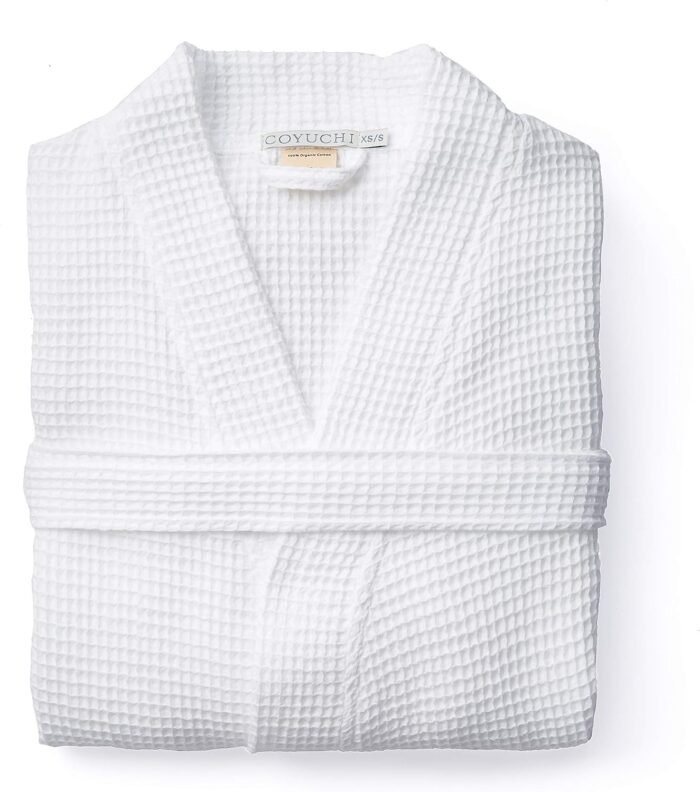 This organic cotton robe is a luxurious treat. I chose this one specifically because it’s organic cotton, which meant that I knew it would be ultra soft on my skin and breathable which is what I need as I’m eczema-prone. The fabric creates a cozy and comfortable experience. Back to the organic cotton, I love the touch of sustainability and eco-consciousness this brand pushes forward. Yes, it does “shrink” after first wash, I found that air drying in a warm room helps. I’m 5’9 and 186 lbs, I bought the L/XL and I have a great amount of room for lounging. My husband that is 6’2” 215 lbs also has a sizable amount of room to relax in my robe as well, LOL.