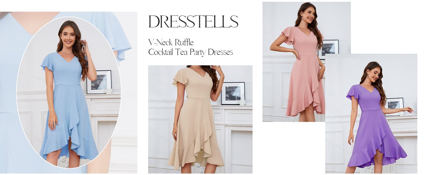 The video showcases the product in use.The video guides you through product setup.The video compares multiple products.The video shows the product being unpacked. Elegant Women’s Cocktail Dresses Merchant Video