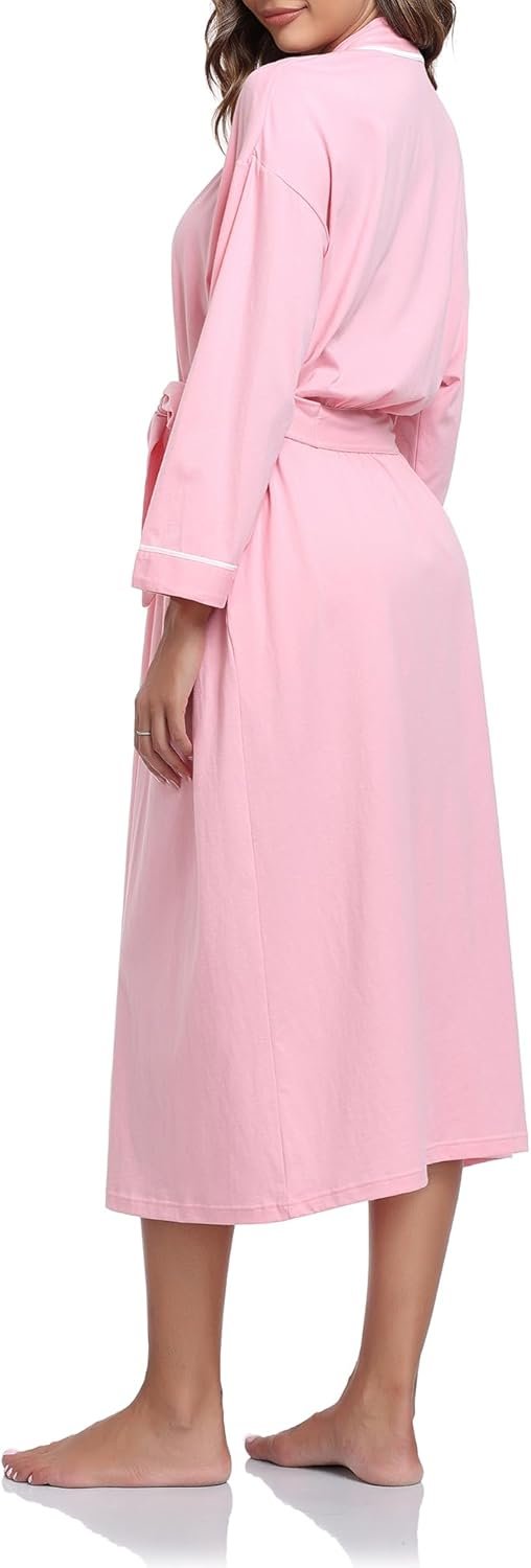 I was looking for a cotton robe that would be comfy after the shower. This robe is PERFECT! The fabric is soft, absorbent and just stretchy enough to be comfortable. I love the soft pink color too! And the price was great. This robe ticked all of the boxes! Love love love this robe!