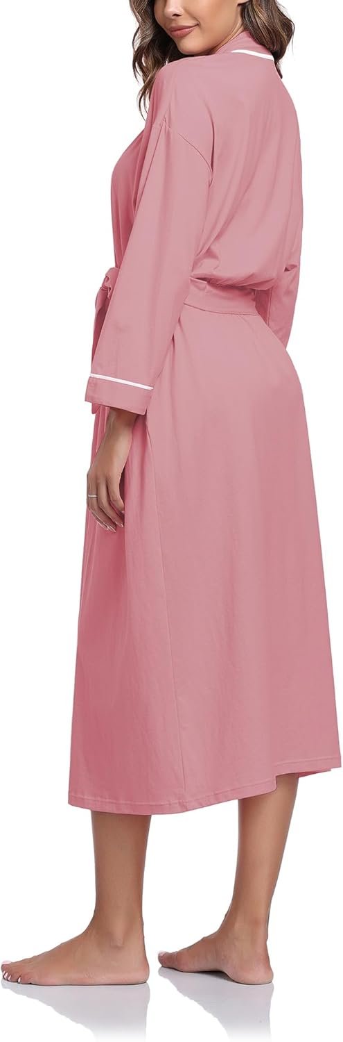 EA’S SECRET 100% Cotton Robes for Girls Light-weight Lengthy Kimono Bathrobe Mushy Women Loungewear with Pockets
