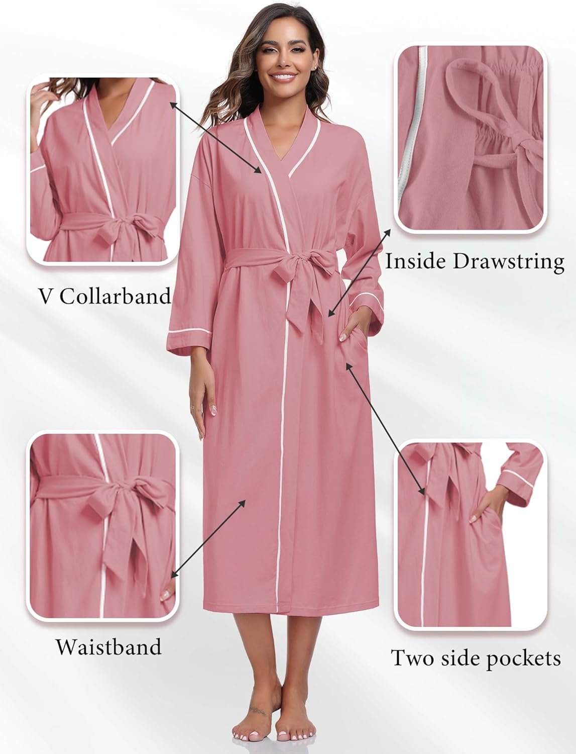 11 مراجعة لـ EA’S SECRET 100% Cotton Robes for Girls Light-weight Lengthy Kimono Bathrobe Mushy Women Loungewear with Pockets