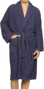 Luxury hotel-style terry bathrobes are tailored and crafted for absorbency. The unisex appearance of this kimono-inspired cotton spa bathrobe makes it a shower essential for women’s and men’s robes.