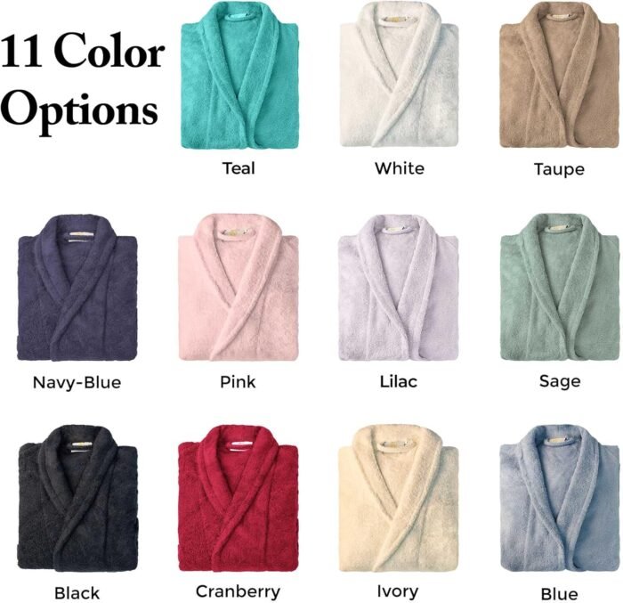 These bathrobes are available in a variety of colors. Choose your favorite color from this range: Blue, White, Burgundy, Ivory, Lilac, Navy-Blue, Pink, Sage, and Taupe.