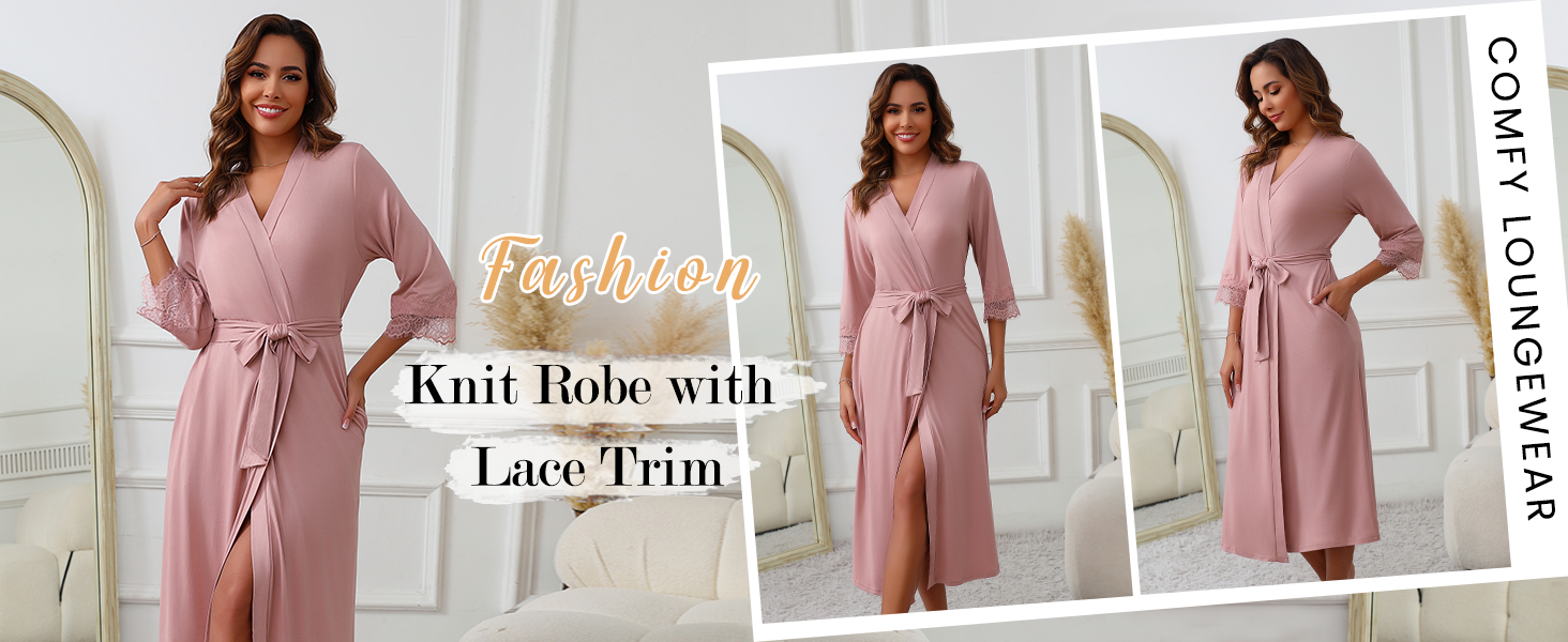 8 مراجعات لـ Ekouaer Girls’s Knit Bathrobe Lace Kimono Robes with Pockets Full Size Light-weight Loungewear S-XXL