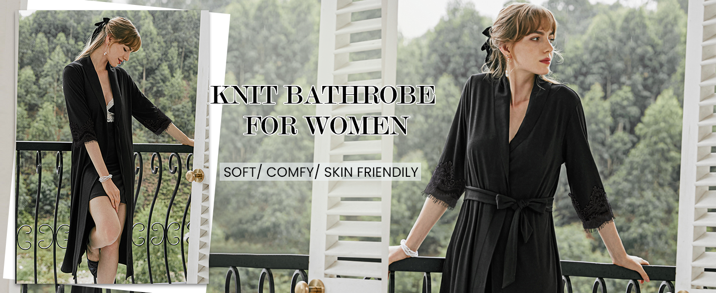 Women’s Knit Bathrobe Kimono Long Sleeve Robes with Pockets