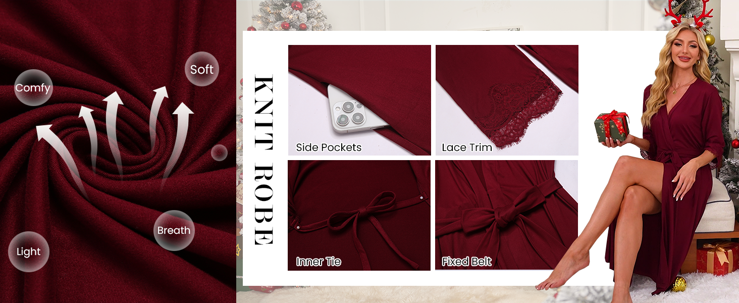 I LOVE THIS ROBE! I have had robes in the past, but I felt frumpy when I put them on. Not with this one. I like to put on my pajamas to watch TV at night. This robe is so soft and flattering. I feel like a queen as I get my coffee in the morning or sit with the hubs and watch a movie. I also love it’s length. I can feel covered if I’m around the house and have family in town.Things I love:-The belt is attached in the back, keeping it from getting lost and from being bunchy, adding to sitting on the wast in a more flattering position-The lace trim – feels luxurious and not like a grama’s moo-moo-The Color – I got the deep red and it’s beautiful!I’m 5’6″ and weight 170 pounds. I ordered a L and it fits just right. It’s not too tight or too big. It runs very true to size.