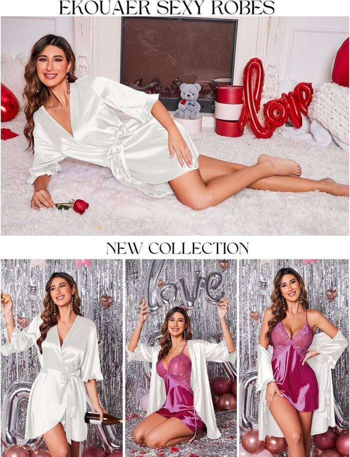 Home » Shop » Ekouaer Girls’s Satin Gown Valentines Lingerie for Girls Kimono Bathrobe Brief Ruffle Belted Robes Bridesmaids Sleepwear
