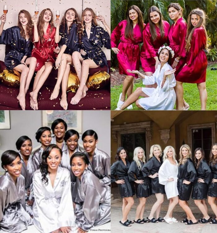 BABEYOND Women’s Kimono Robe Long Satin Silky Floral Lightweight Bridesmaid Wedding Bachelorette Party Robe