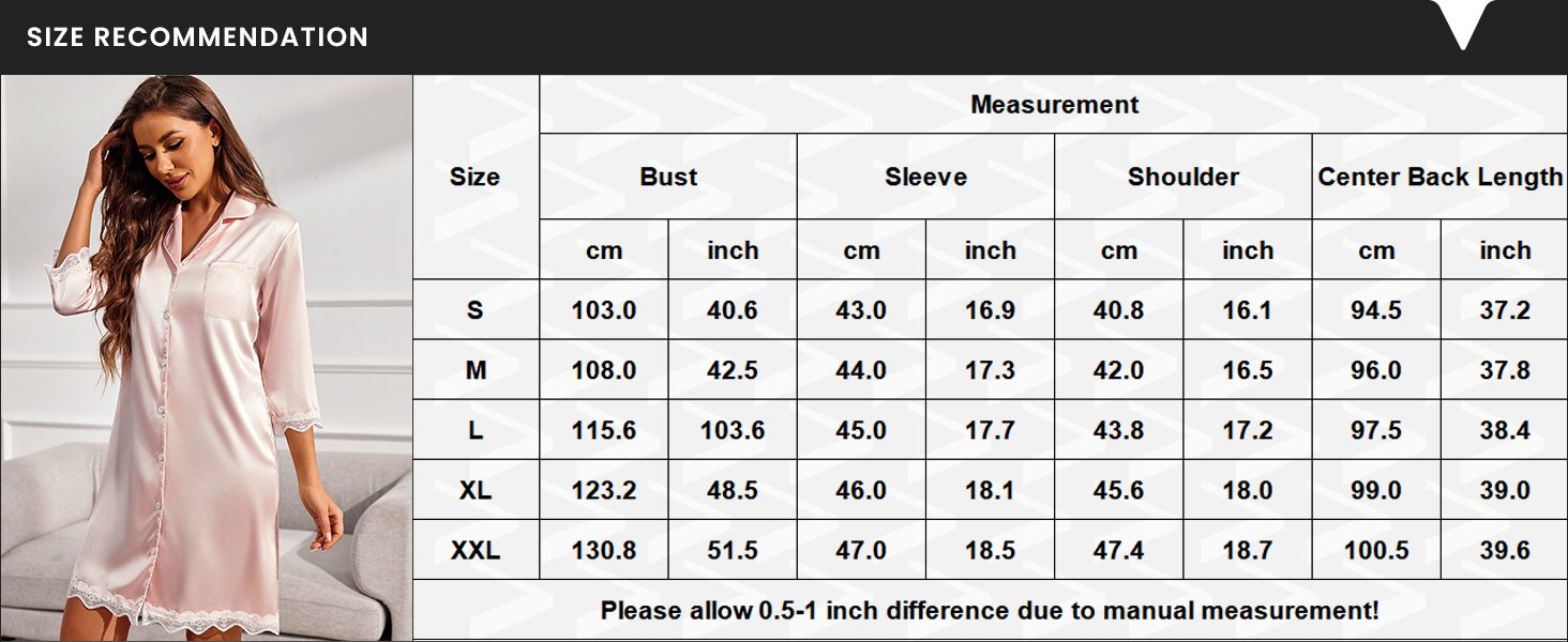 Sexy v neck, lace hem and lace cuffs, Unique Boyfriend Style, keep you relaxed and attractive. Loose-fitting nightgown goes well with most body shape, essential for sleeping and lounging.
