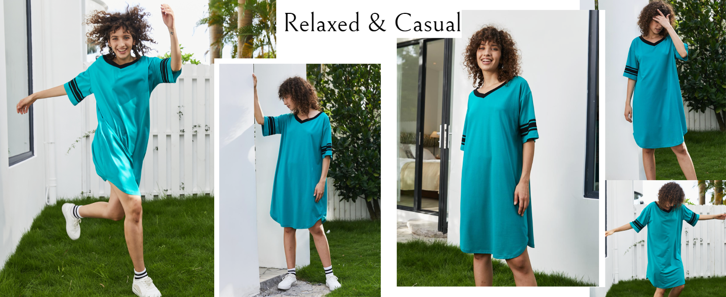 These womens nightgowns sleep shirt dress feature short sleeve, v neck, above knee length, loose fit boyfriend style