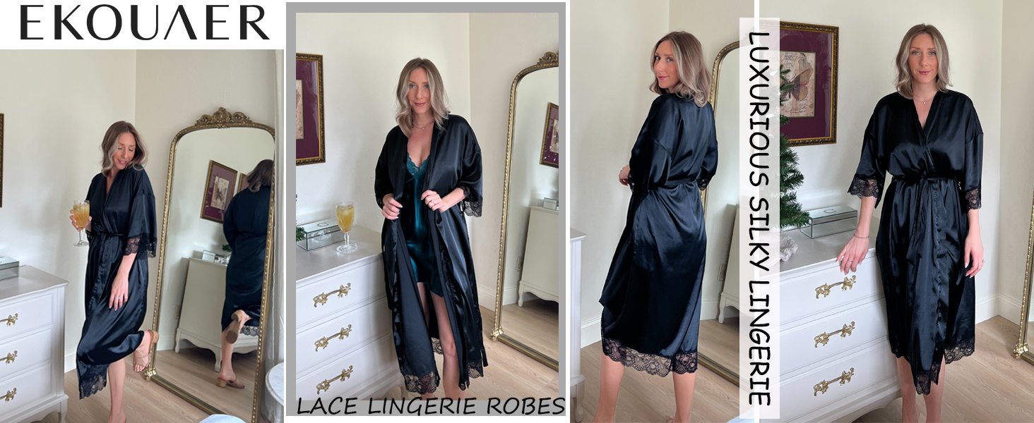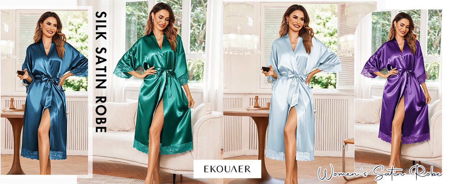 Ekouaer Luxurious Silky Lingerie Robes Satin Loungewear