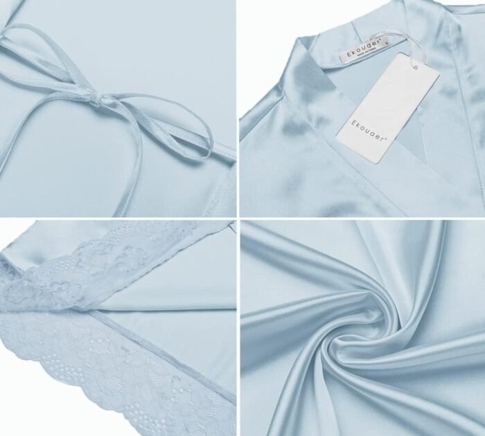 Ekouaer Women’s Satin Robe Sexy Silk Robe with Lace Trim Bridesmaid Party Robe