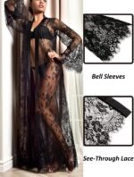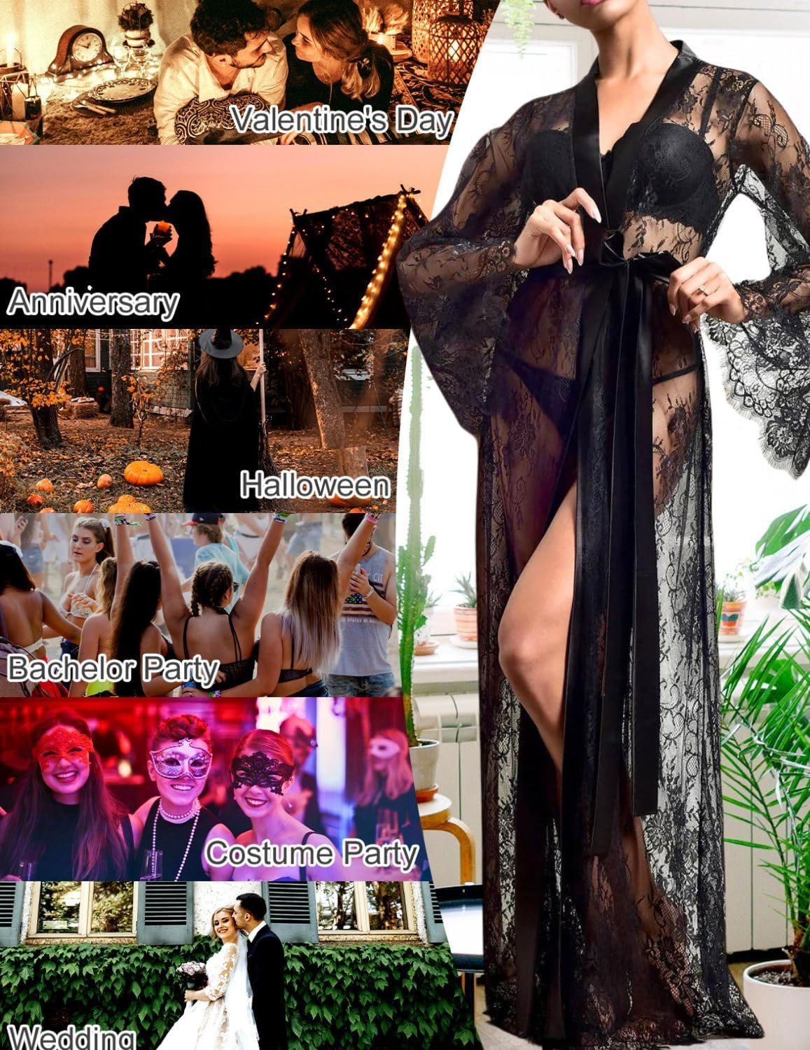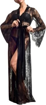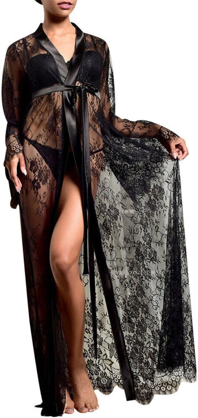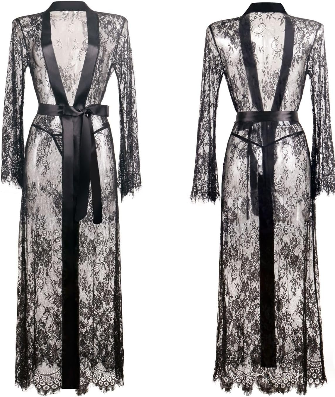مراجعتين لـ Girls Lengthy Floral Lace Kimono Gown Horny Babydoll Lingerie Sheer Mesh Chemise Nightgown Bridesmaid Swimsuit Cowl Up