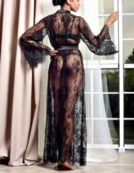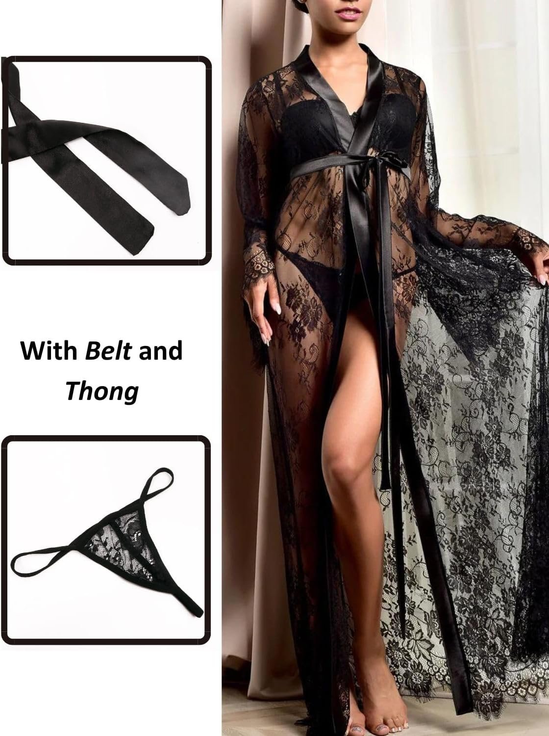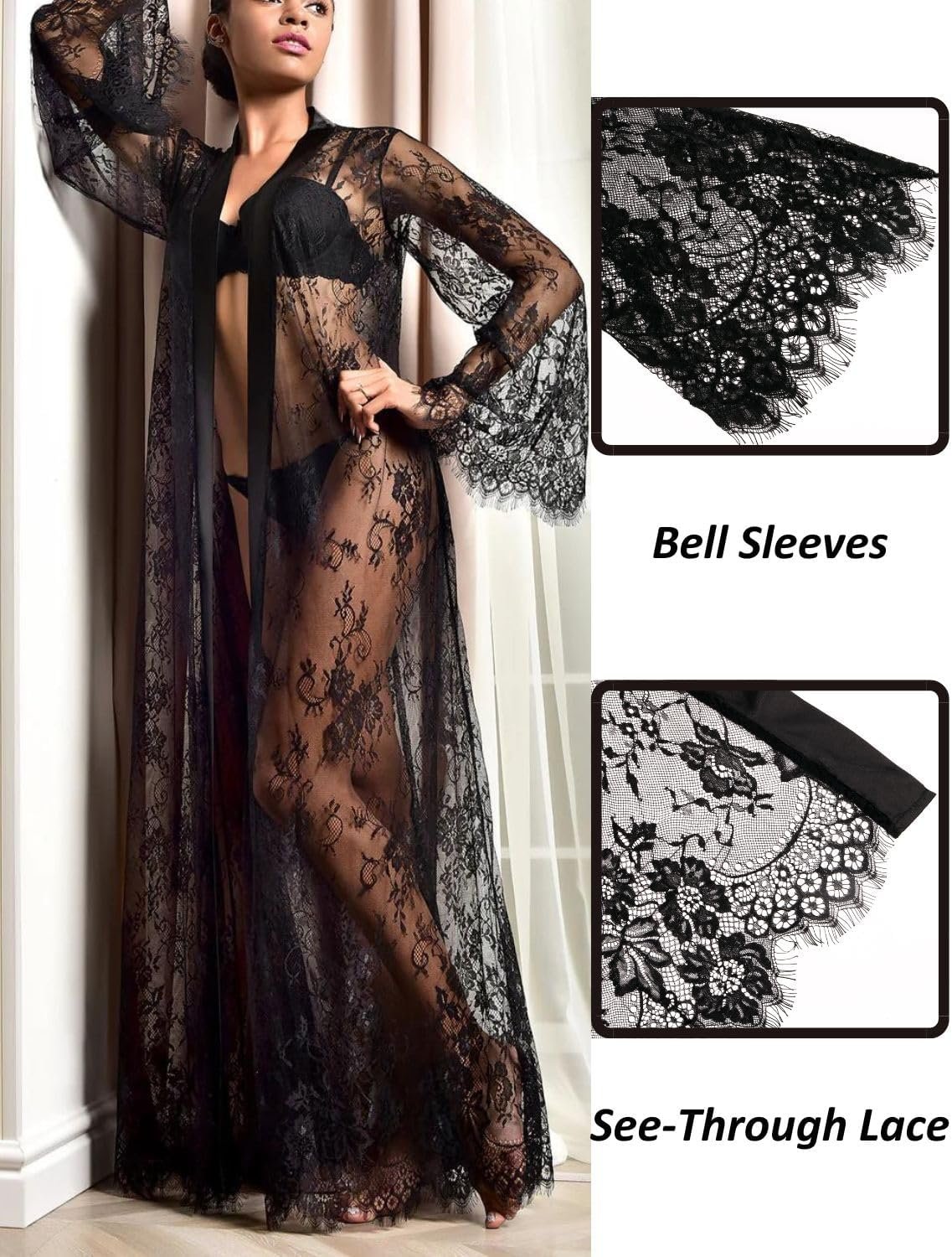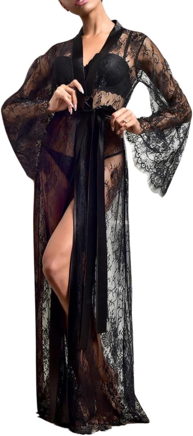 Girls Lengthy Floral Lace Kimono Gown Horny Babydoll Lingerie Sheer Mesh Chemise Nightgown Bridesmaid Swimsuit Cowl Up