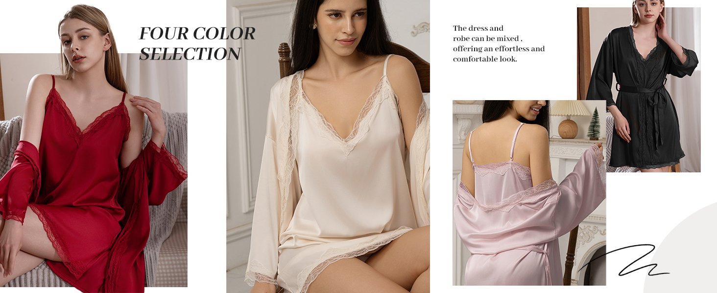 It is a little tight, I have a larger chest for someone my size ( 5’3″ and about 125lb) So it is a bit tight with any kind of bra on, ofc you aren’t supposed to wear bras with these but I do sometimes; I do love the quality, how soft it is, feels like cashmere on the skin, it is so silky! The sleeves are like 3/4 sleeves, the lace is soft, not itchy and messy; I an IN LOVE with the color! The pale dusty pink is beautiful! It does not have much stretch to it, other than the adjustable straps, they are very stretchy which is nice! This DOES let the cleavage show! I found myself pulling it up a lot, I think that is just bc I needed to tighten the straps though. I would order this item again, it ties up well, and it has in inside tie as well as the robe tie too. I like the quality and coloring of it. It does a dang good job of making you feel sexy! And it is comfortable to sleep in too!