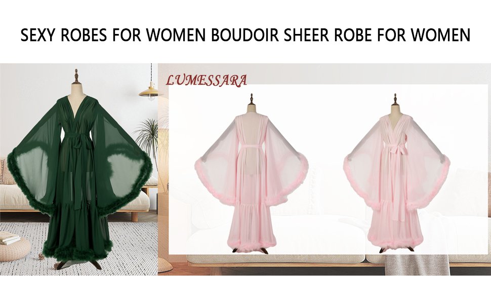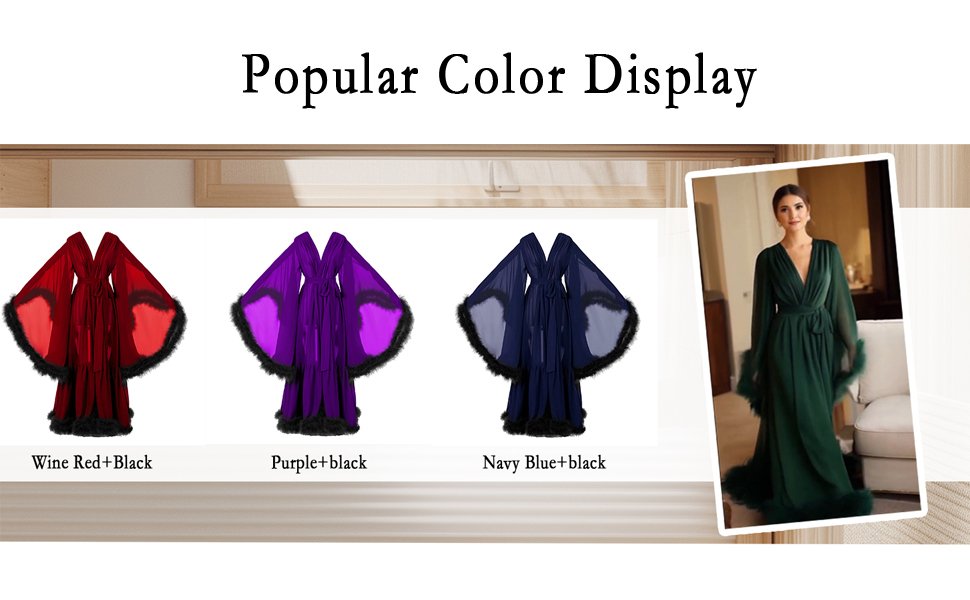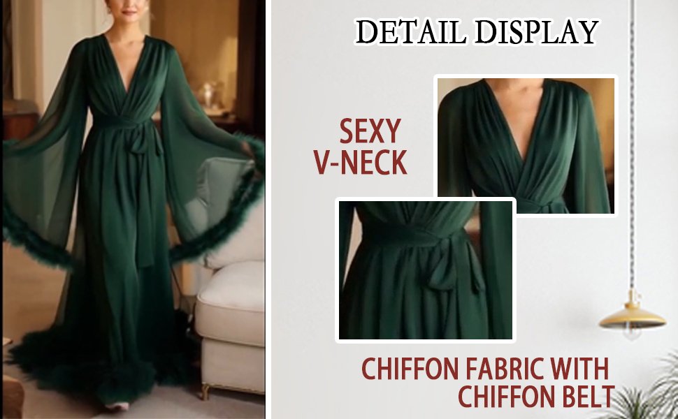 Women’s Sexy Feather Bridal Robe Long Old Hollywood Chiffon Robe Sheer Maternity for Photoshoot Sleepwear Nightgown Bathrobe