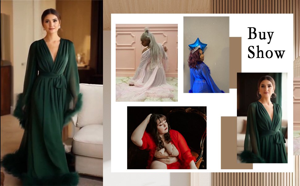 مراجعة واحدة لـ Girls’s Attractive Feather Bridal Gown Lengthy Outdated Hollywood Chiffon Gown Sheer Maternity for Photoshoot Sleepwear Nightgown Bathrobe