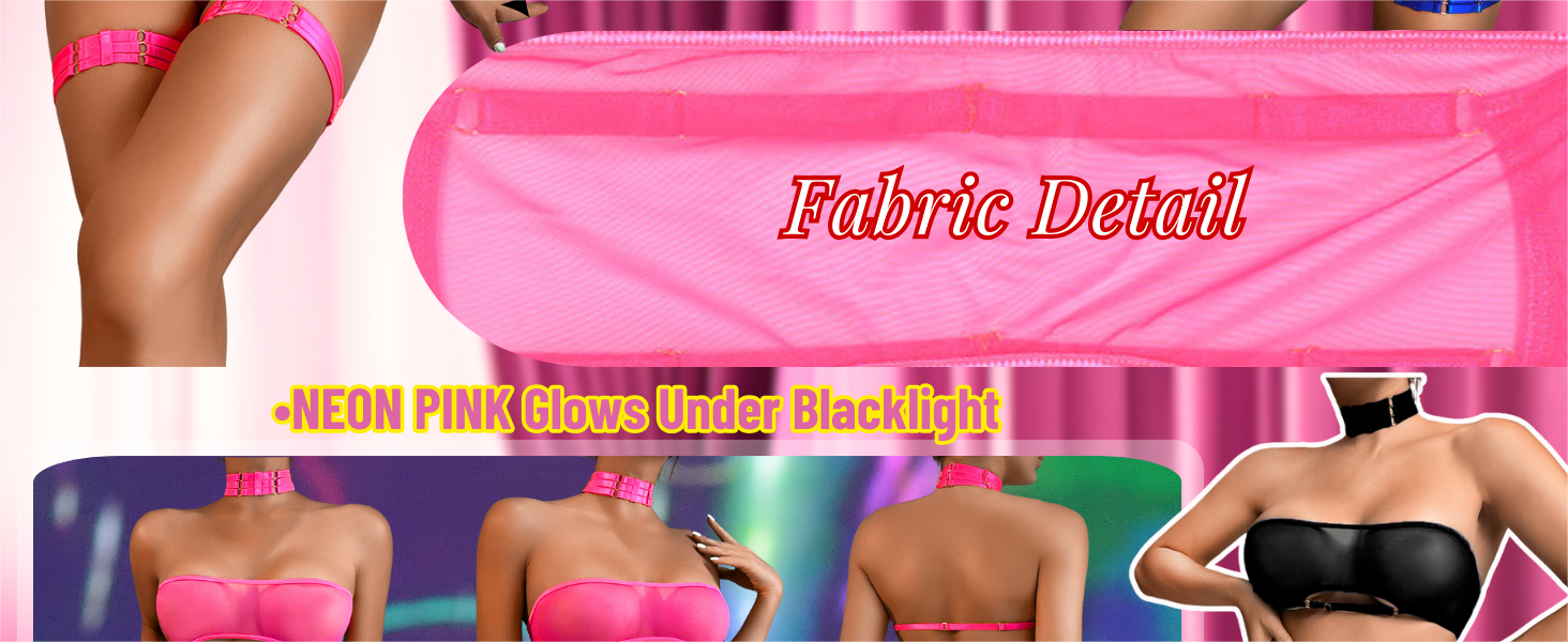 Sheer Mesh Lingerie Set, Sexy Bra And Panty 4PC, Strapless Choker