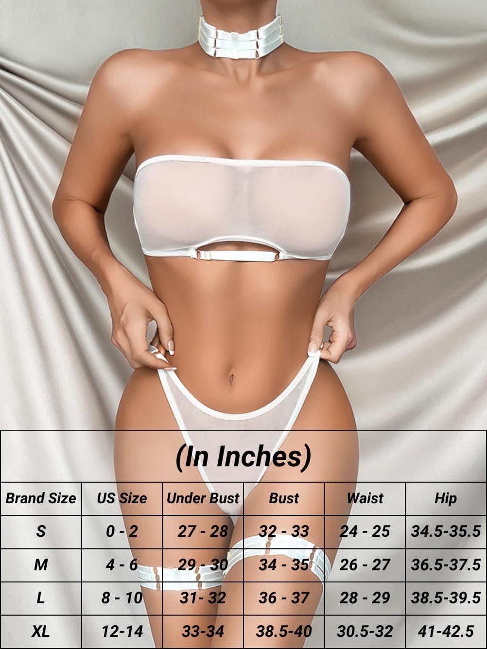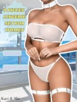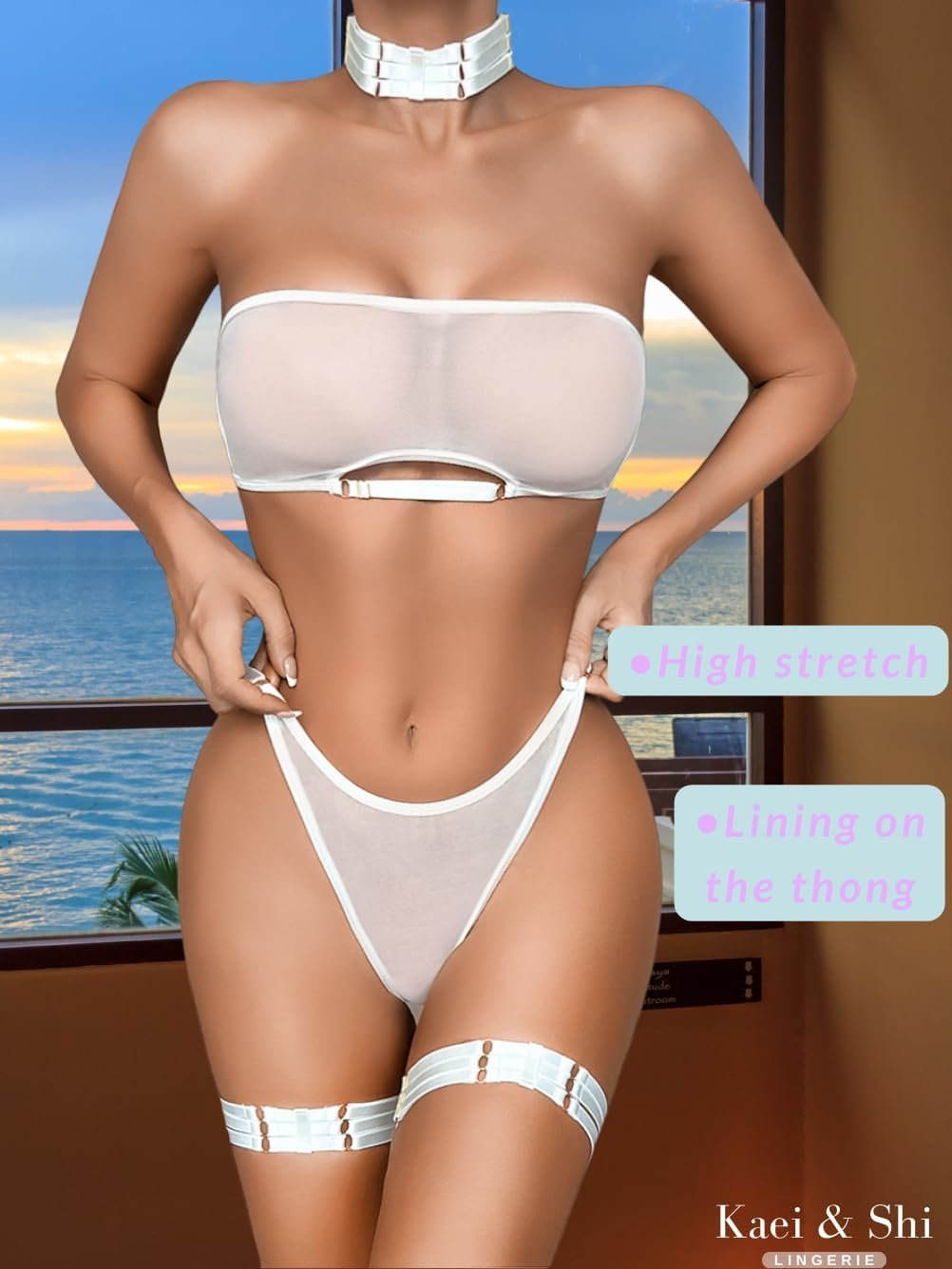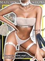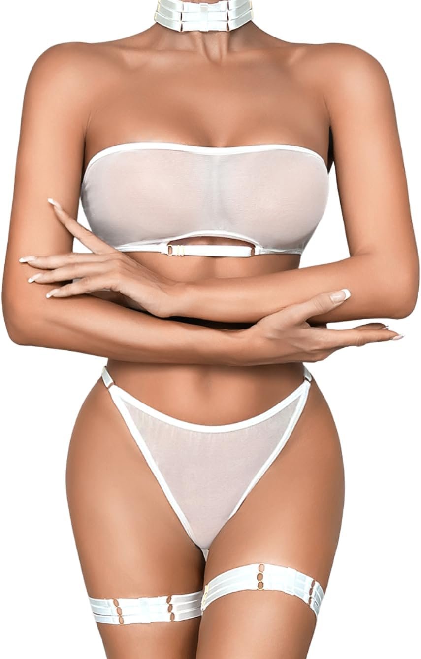 Kaei&Shi Sheer Mesh Lingerie Set, Attractive Bra And Panty 4PC, Strapless Choker