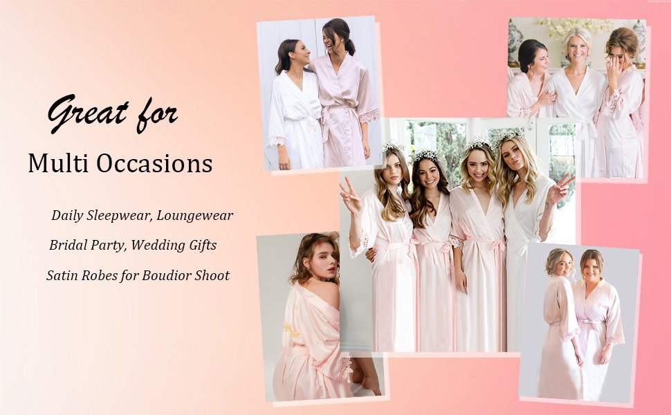 Perfect as sleepwear,loungewear wedding robes, bridesmaid robes, bride robes, bridal robes, bridal party robes, birthday party robes, lingerie party robes, and bachelorette party robes, etc.CARE INSTRUCTIONS: Machine wash cool, do not bleach – iron/steam on low heat only.
