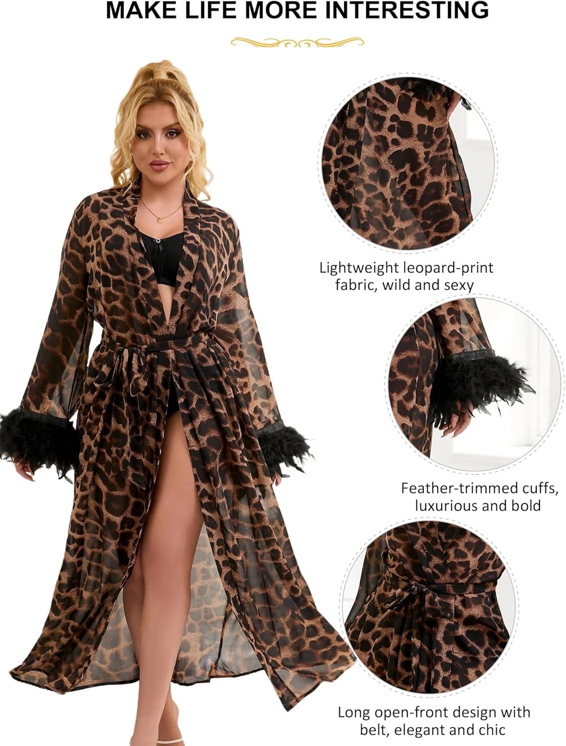 Yes, our leopard print robe comes in plus sizes to cater to a diverse range of body types. We believe that everyone deserves to feel stylish and confident, and this robe is designed to flatter and fit comfortably.