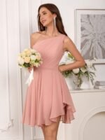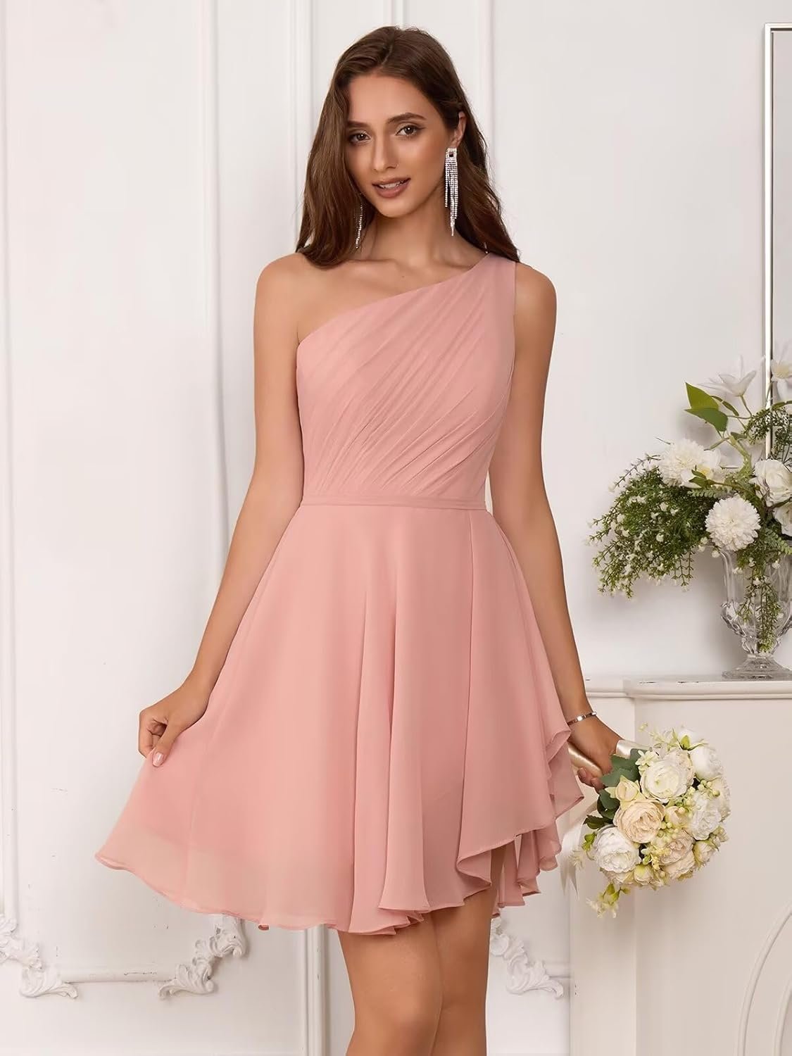 Color Show One Shoulder Short Bridesmaid Dresses for Women 2025 Chiffon Ruched A Line Formal Evening Dress One Shoulder Short Bridesmaid Dresses for Women 2025 Chiffon Ruched A Line Formal Evening Dress