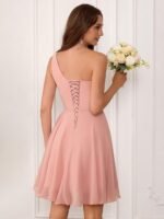 Dress detail display One Shoulder Short Bridesmaid Dresses for Women 2025 Chiffon Ruched A Line Formal Evening Dress One Shoulder Short Bridesmaid Dresses for Women 2025 Chiffon Ruched A Line Formal Evening Dress