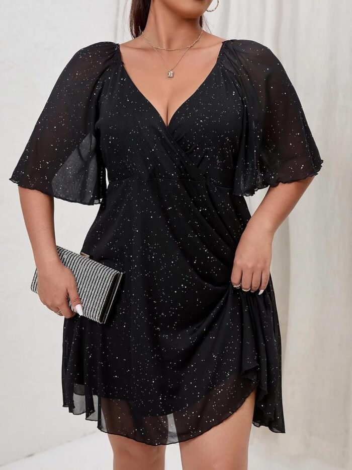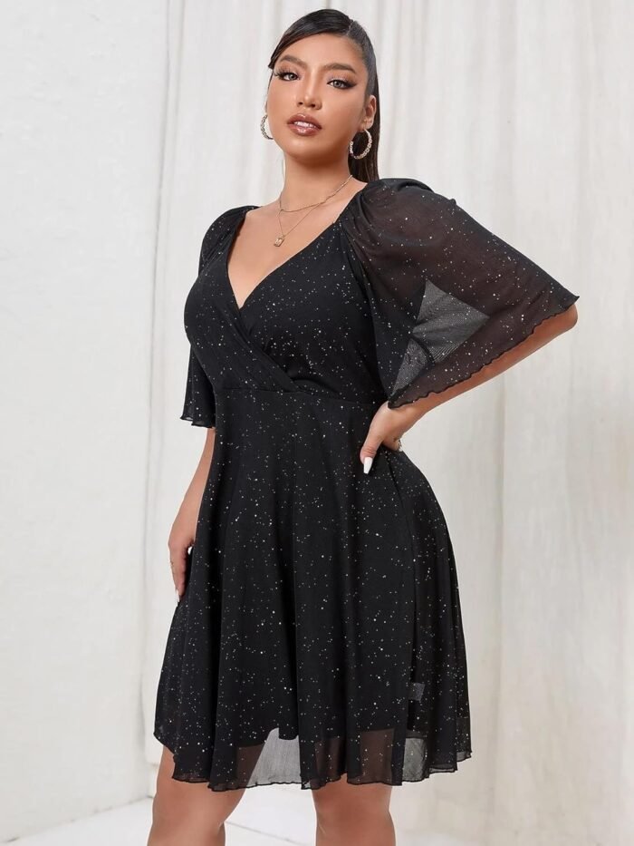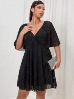 Plus Size Cap Sleeves Sequins Skater Cocktail Club Dress