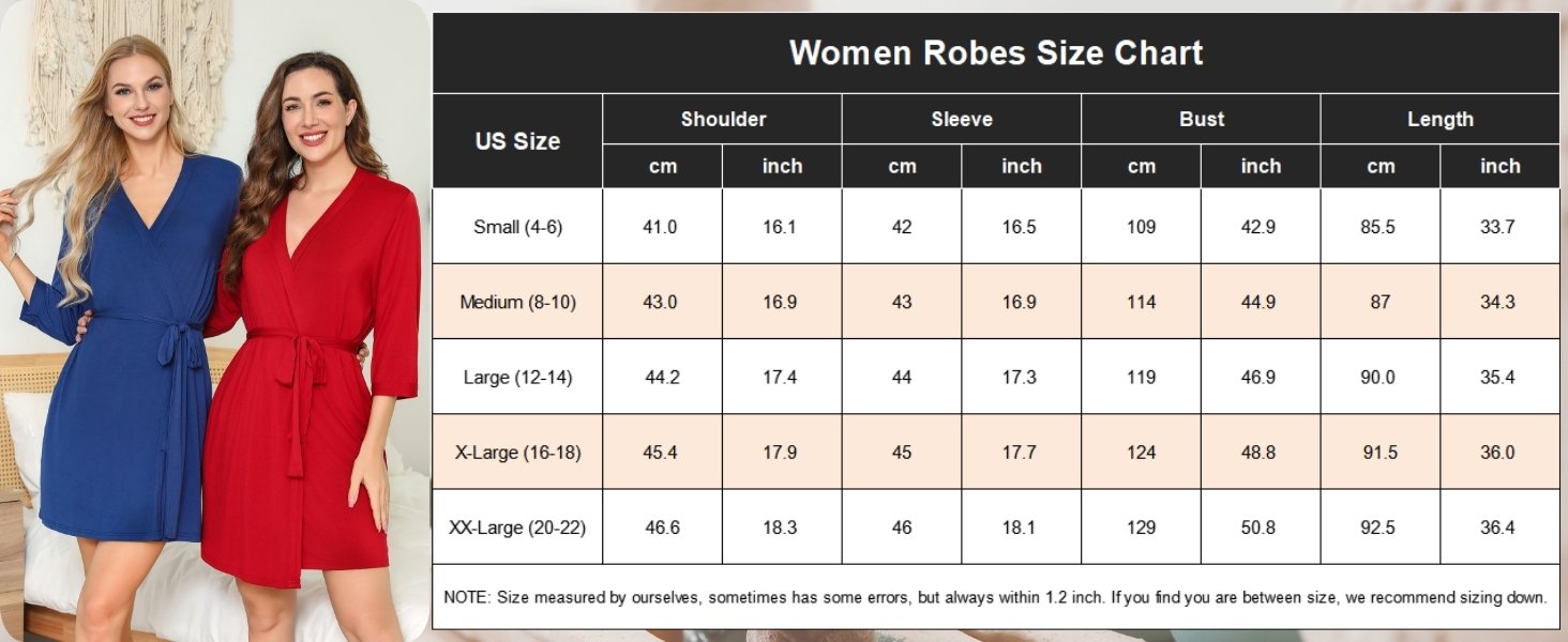 I bought this dressing gown mainly for the beach house and travelling and received it yesterday – very soft and lovely to wear as the feel is luxurious. The length for me (5″1 or 157cm) is to my knees and the fit is a bit big for me that is why I took 1 star off (i weigh 49kg or108 lbs) I bought the S as there is no XS. The pockets on each side are great.Update on this item April 2023: I returned it because the inner ties drove me crazy coming undone all the time which made the hem of the dressing gown fall uneven and made me look lopsided! Didn’t like that at all. First impressions were good but unfortunately not for me.
