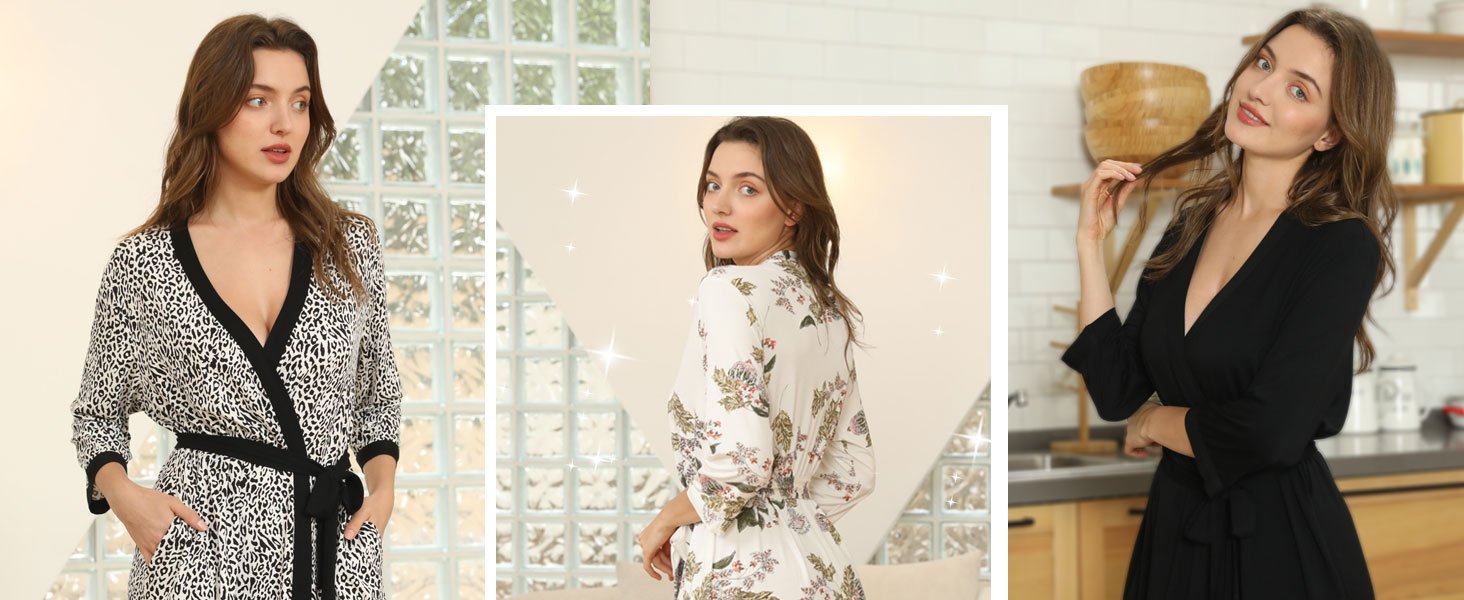 Samring Robes for Women V Neck Kimono Bathrobe Sleepwear