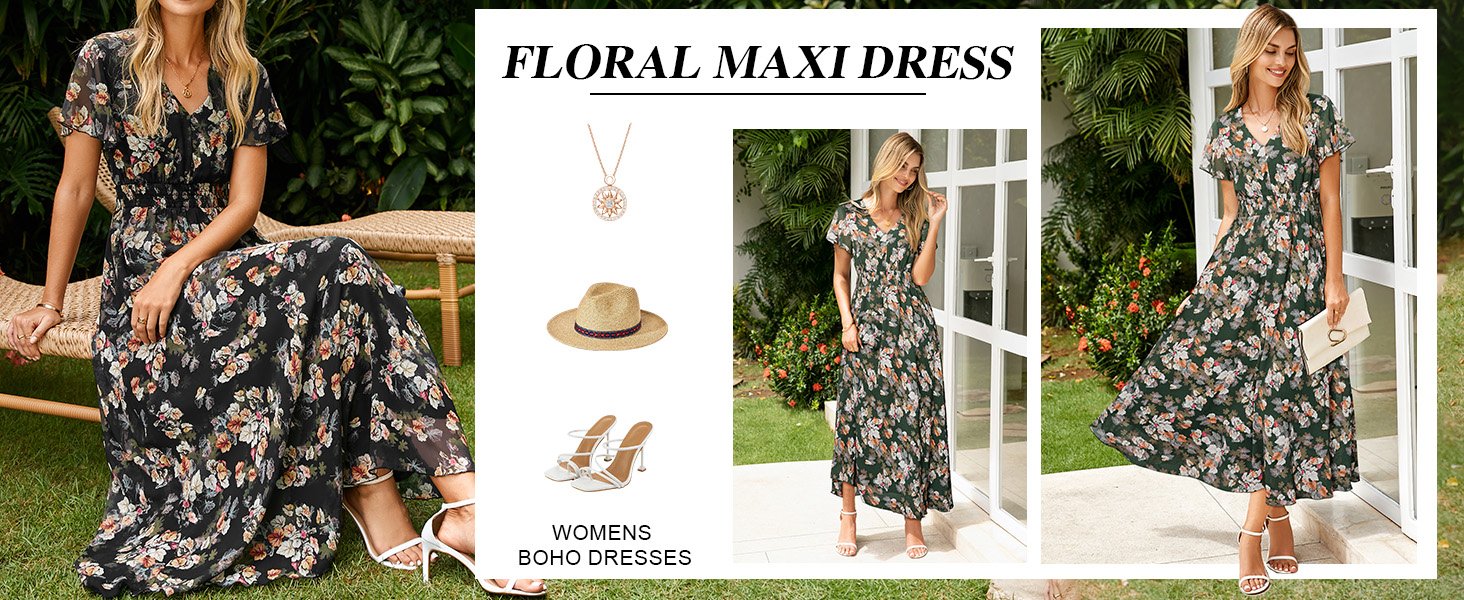 The video showcases the product in use.The video guides you through product setup.The video compares multiple products.The video shows the product being unpacked. summer maxi dress boho floral dress Merchant Video