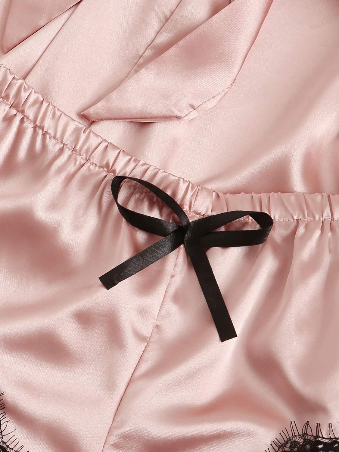 SOLY HUX Women’s Satin Pajama Set 4pcs Floral Lace Trim Cami Lingerie Sleepwear with Robe
