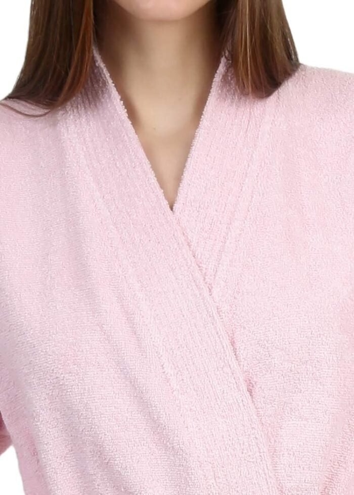 Wonderful 100% Terry Cloth Kimono Style Women’s Robe. Great quality & price. Very comfortable, not too heavy. Cold water wash & tumble dry low. Amazon accurate size recommendation.