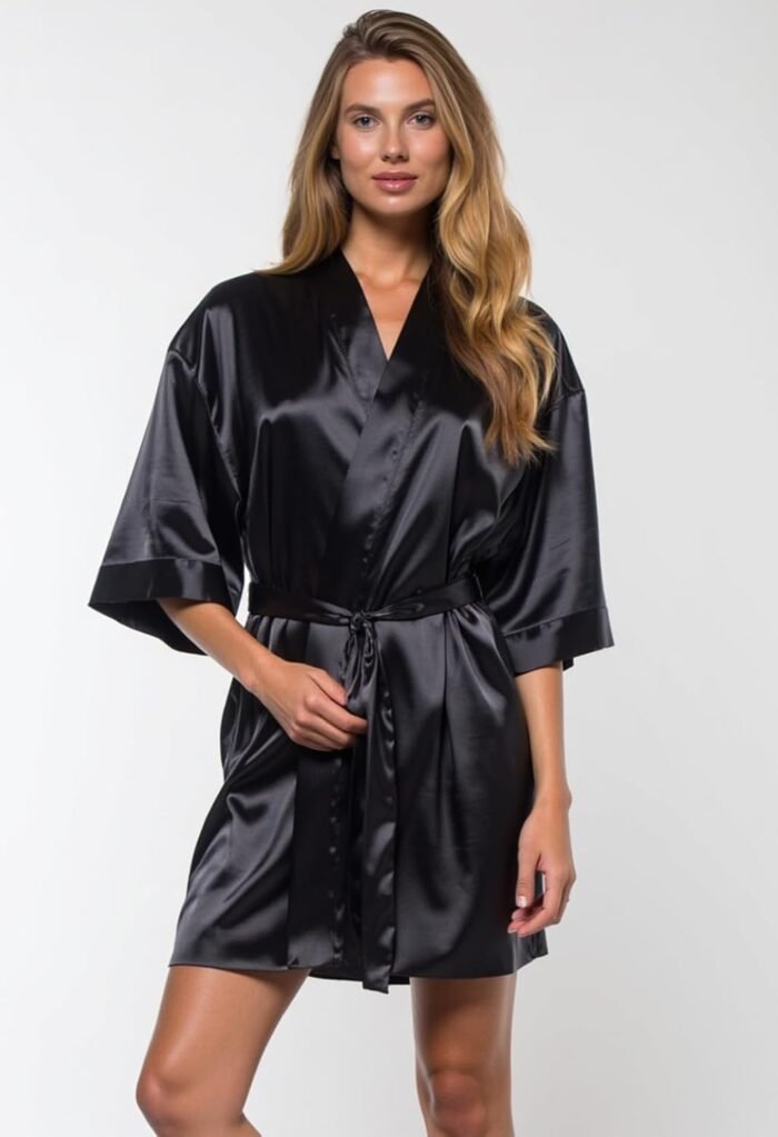 This robe is nice to wear in warmer weather. I am 5’4″, ordered a Medium and it hits close to my knee, so not too short. I like having something pretty to wear while I’m getting ready to go out, doing hair and makeup. This fits the bill perfectly. It seems well made and is silky soft. Really glad I got it, although it won’t get a lot of use during the winter months!