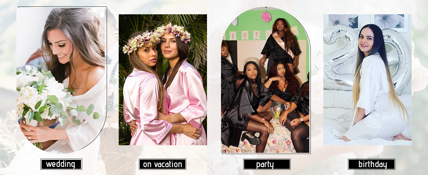 Women silky robes are perfect choices for bridal shower, bridesmaid night party, bridal party gifts, sleeping, bathing and lounging.