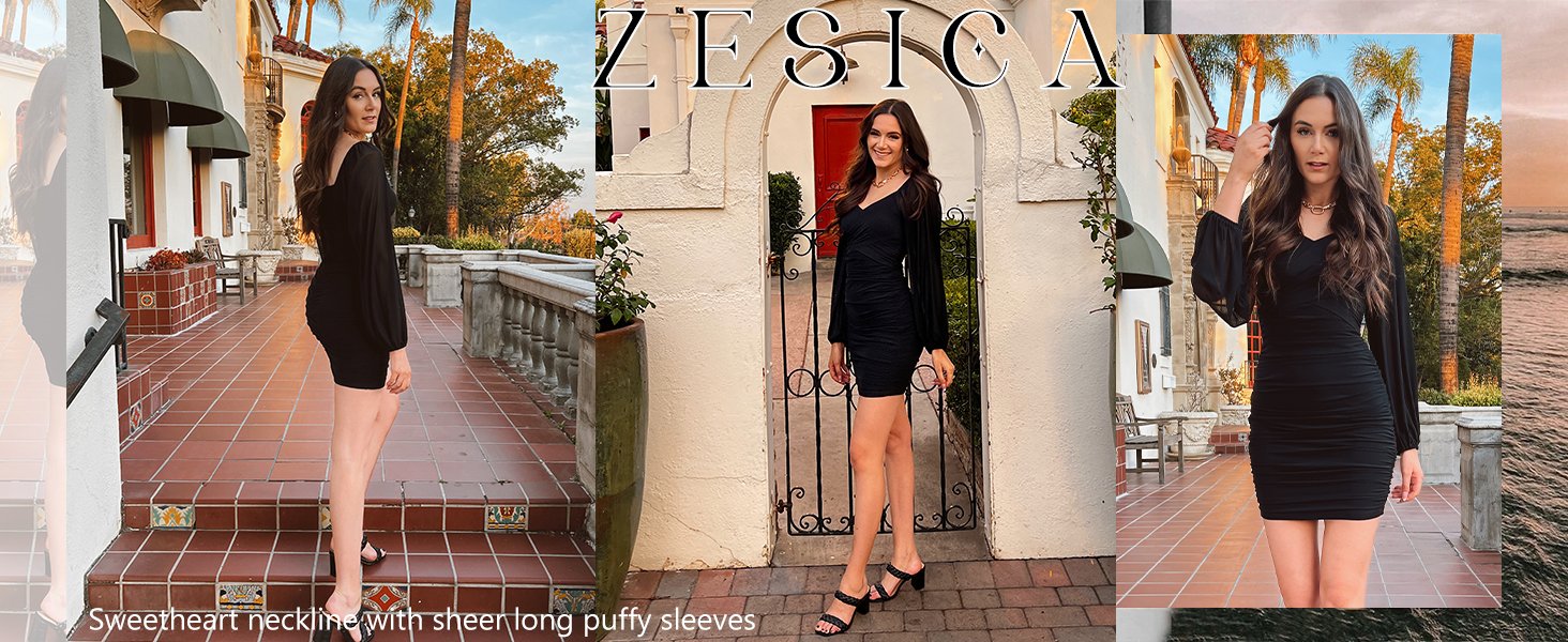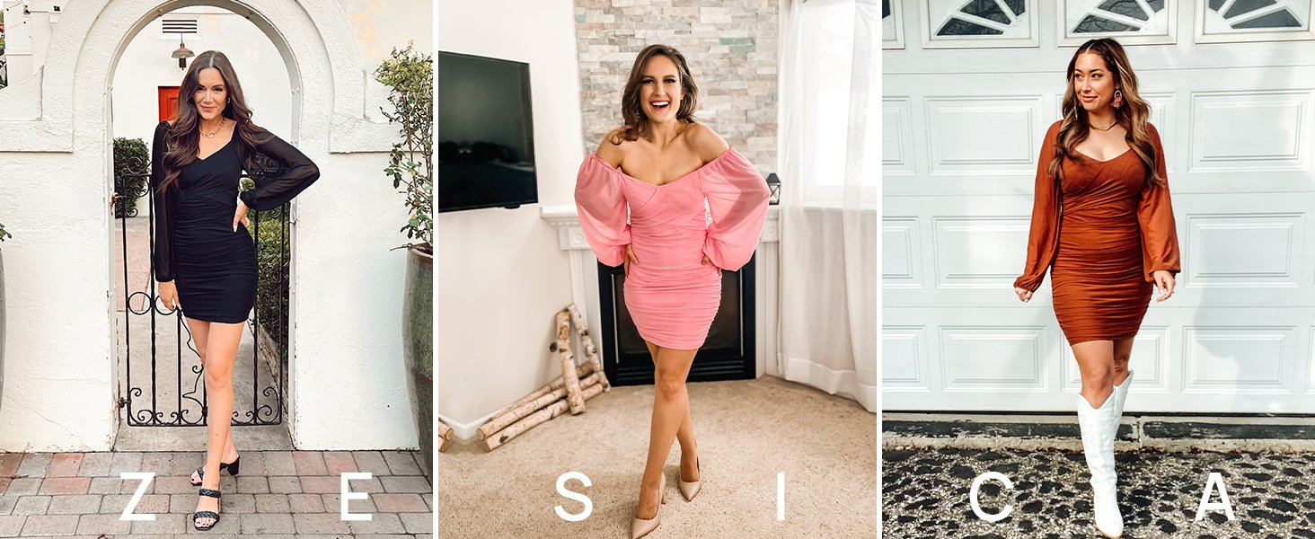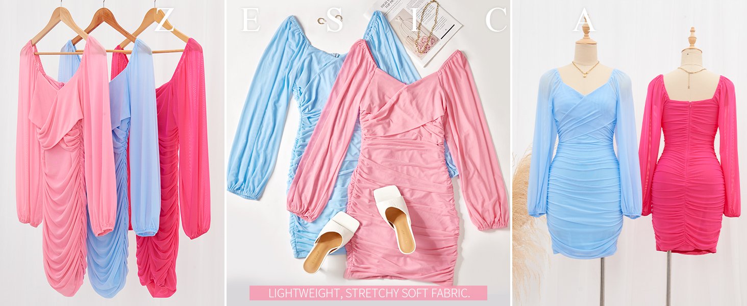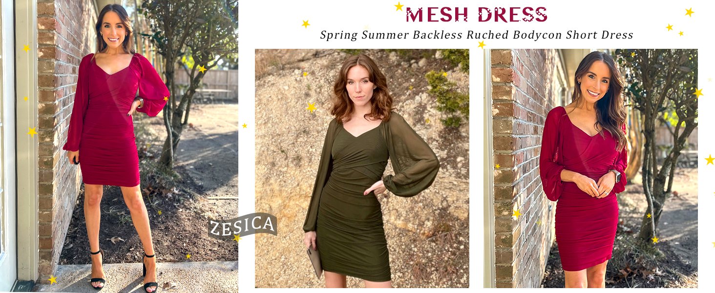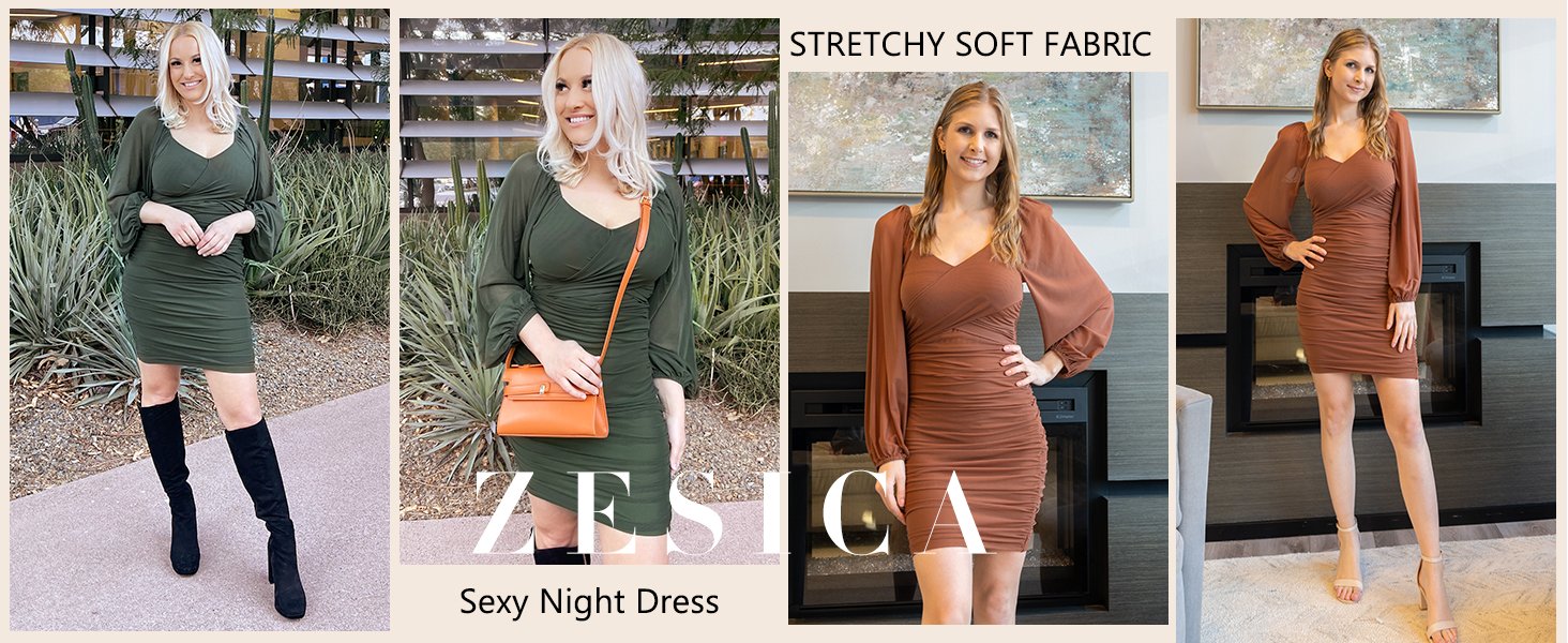 ZESICA Long Sleeve Ruched Bodycon Dress