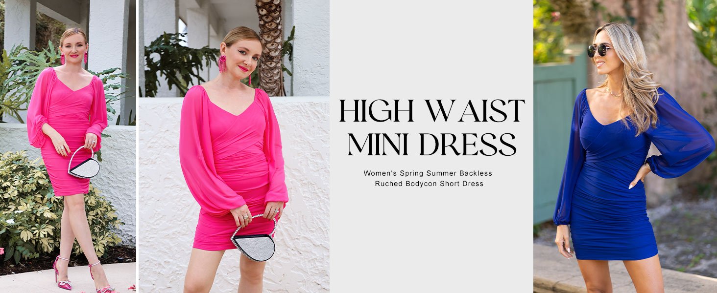 Features: Sweetheart V Neck/Ruched High Waist/Slim Fit/Modest Solid Color/Above Knee Length