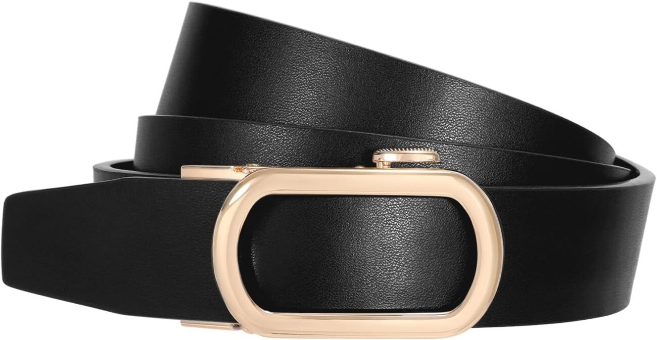 SUOSDEY Girls Leather-based Ratchet Belt for Denims Pants with Gold Computerized Sliding Buckle,Women Gown Belt,Width 1.2″