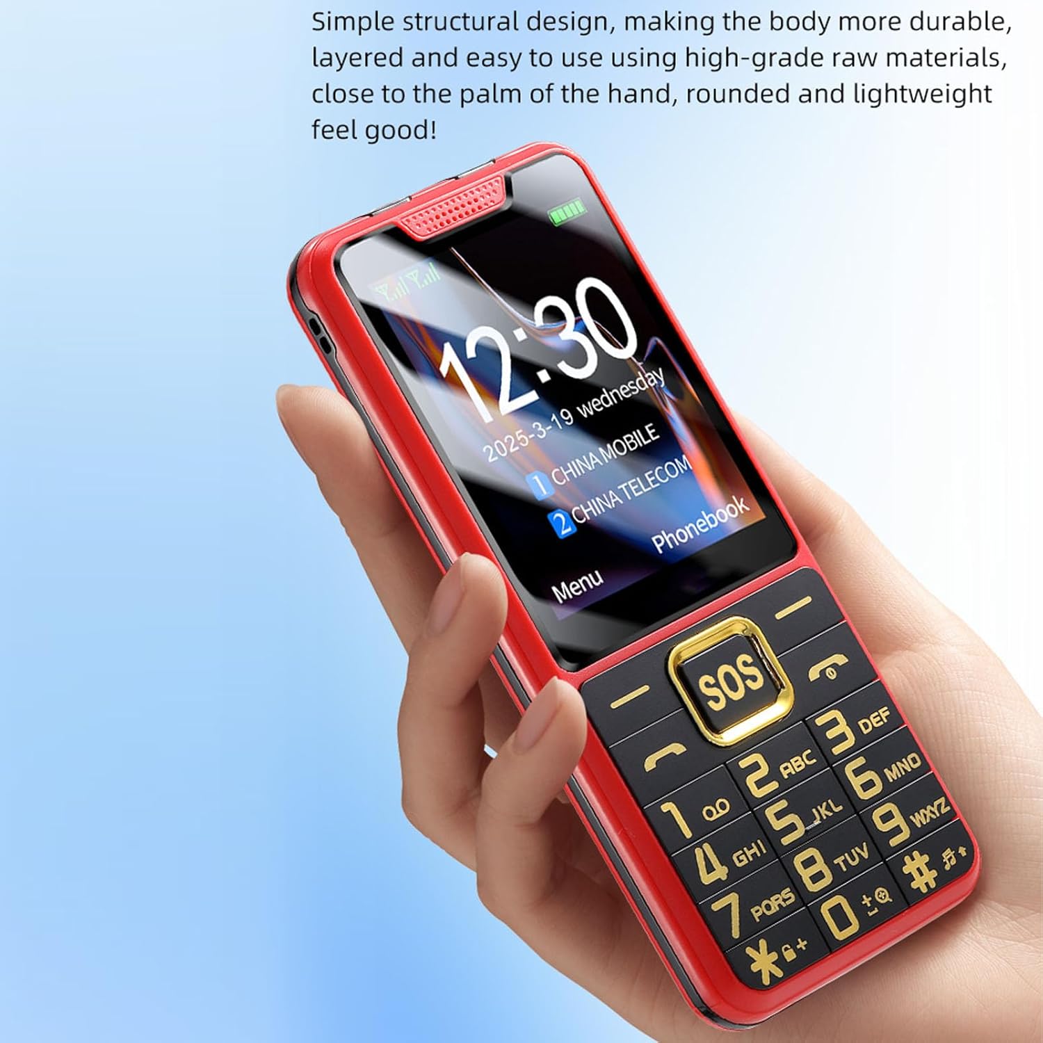 2.6 Inch HD Shatter Proof Display: Featuring a 2.6 inch HD display with shatter proof technology, this senior phone offers crystal clear visibility. Advanced adhesion techniques prevent dust and air from entering.