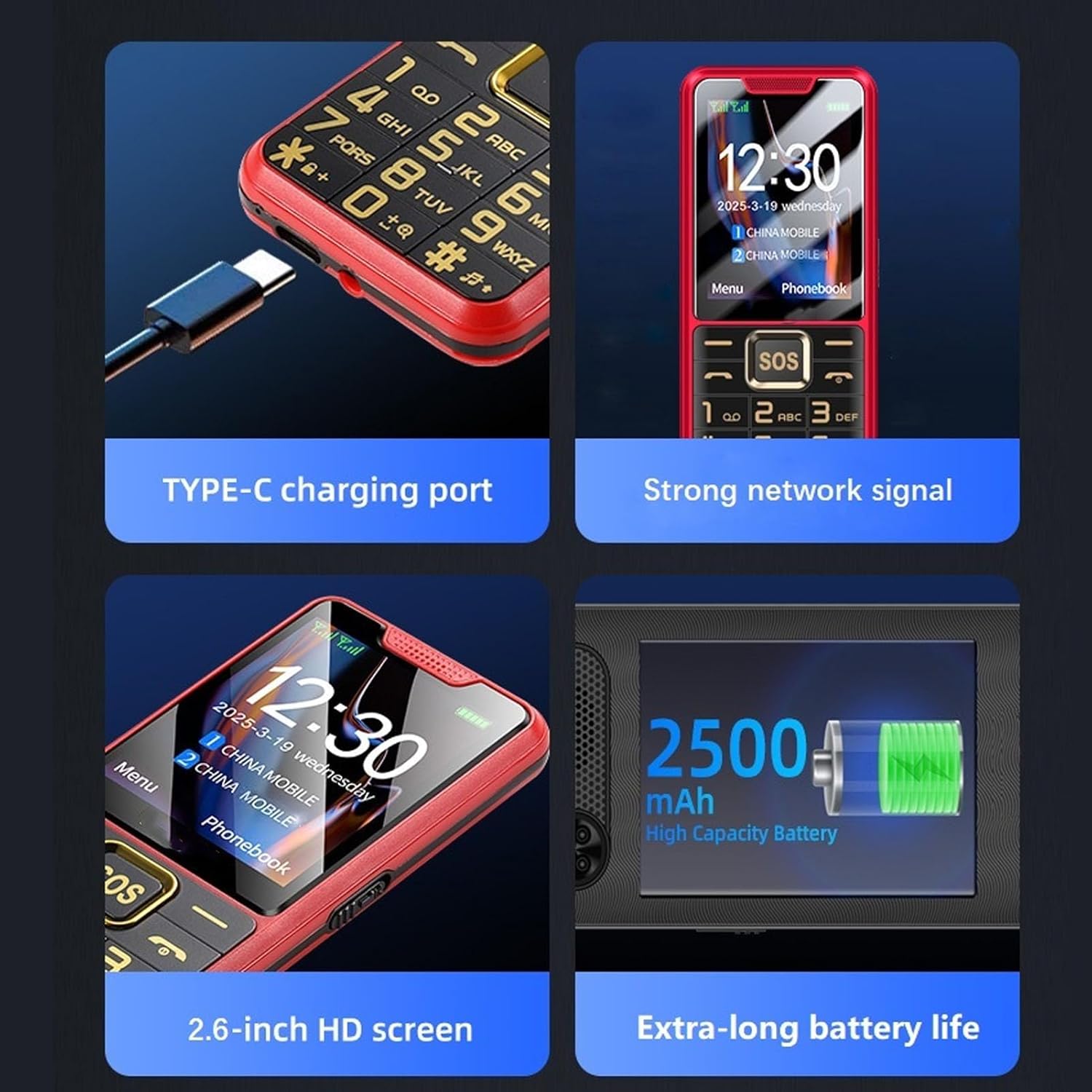 2.6 Inch HD Shatter Proof Display: Featuring a 2.6 inch HD display with shatter proof technology, this senior phone offers crystal clear visibility. Advanced adhesion techniques prevent dust and air from entering.