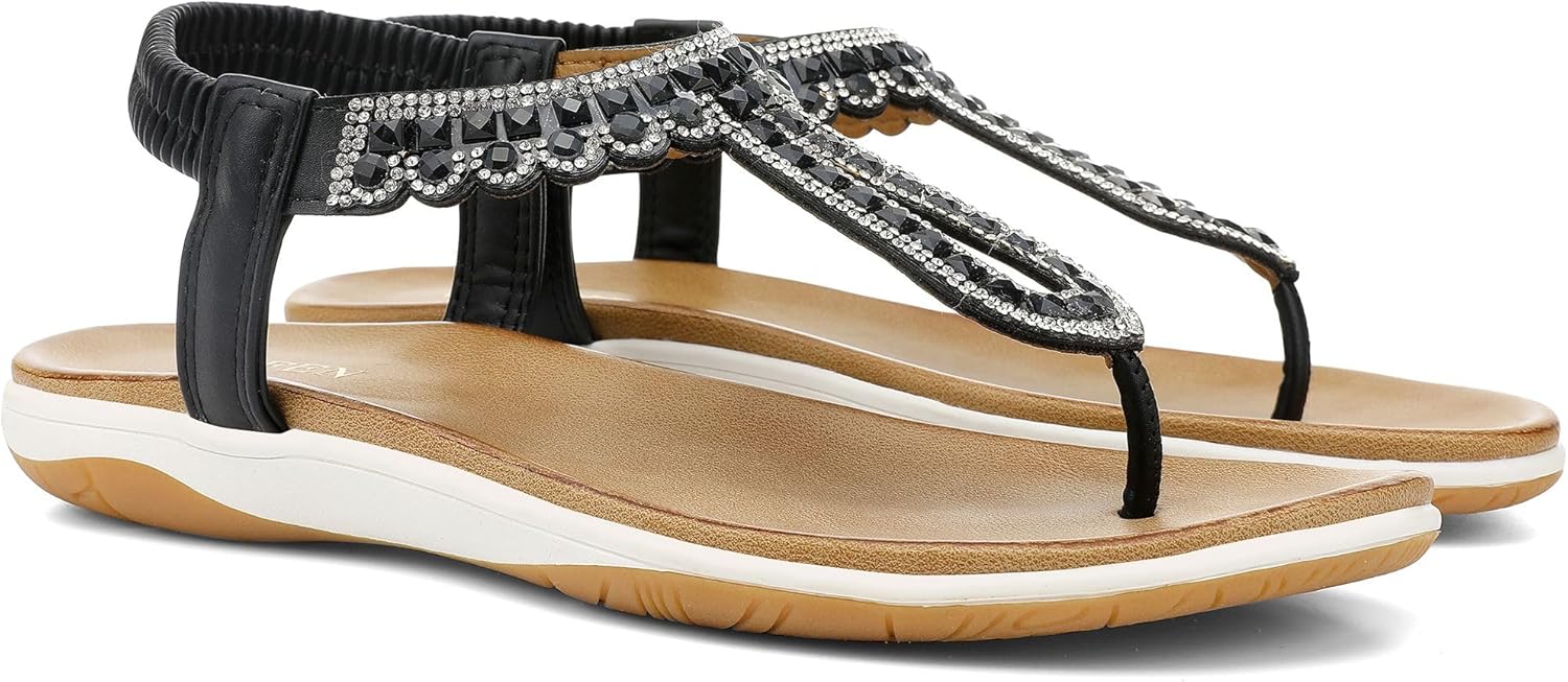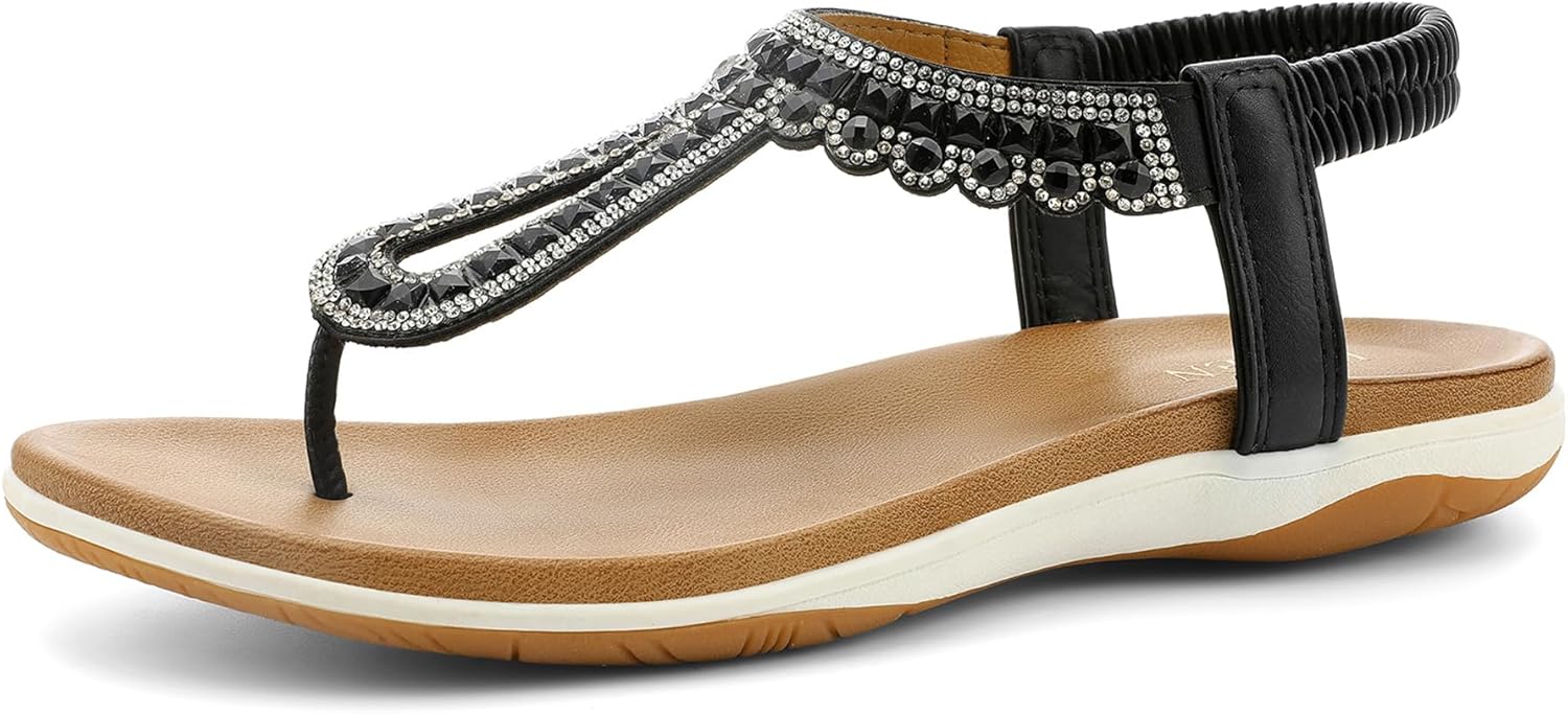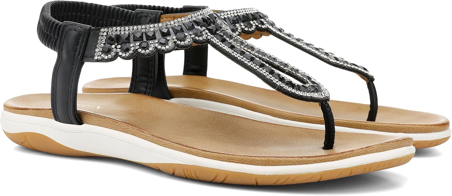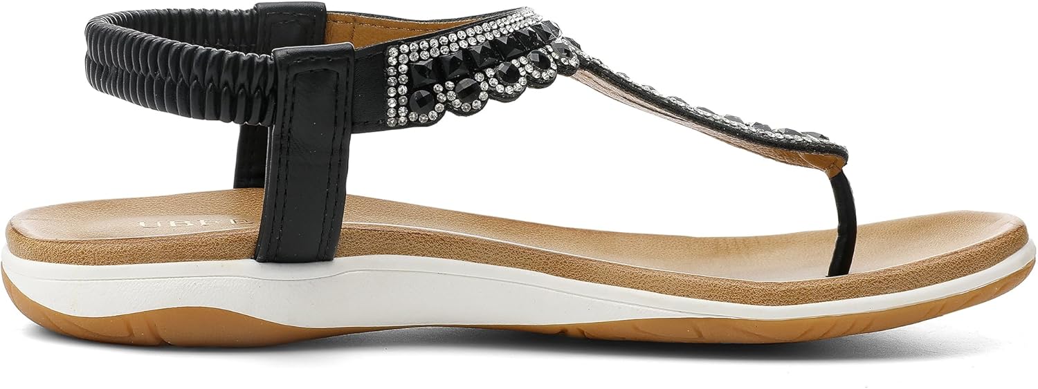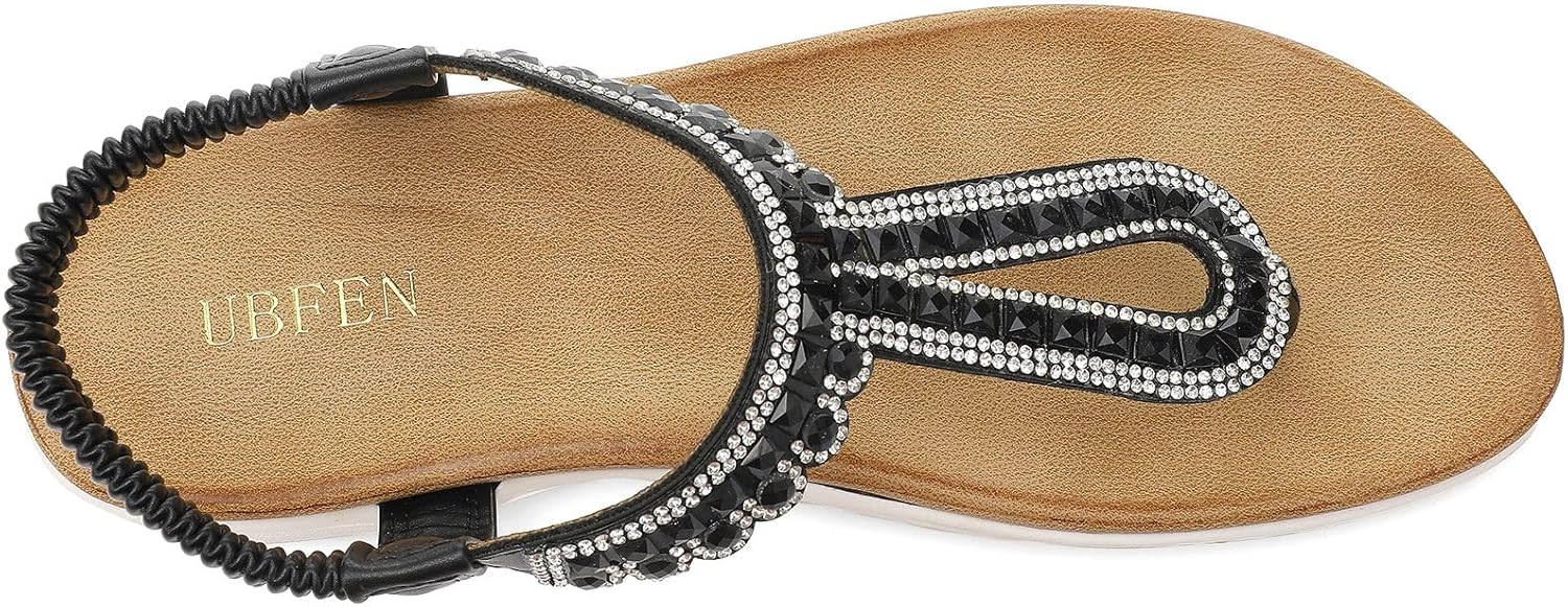 UBFEN Womens Flat Sandals Gown Braided T-Strap Thong Sandals with Arch Assist Comfy for Strolling