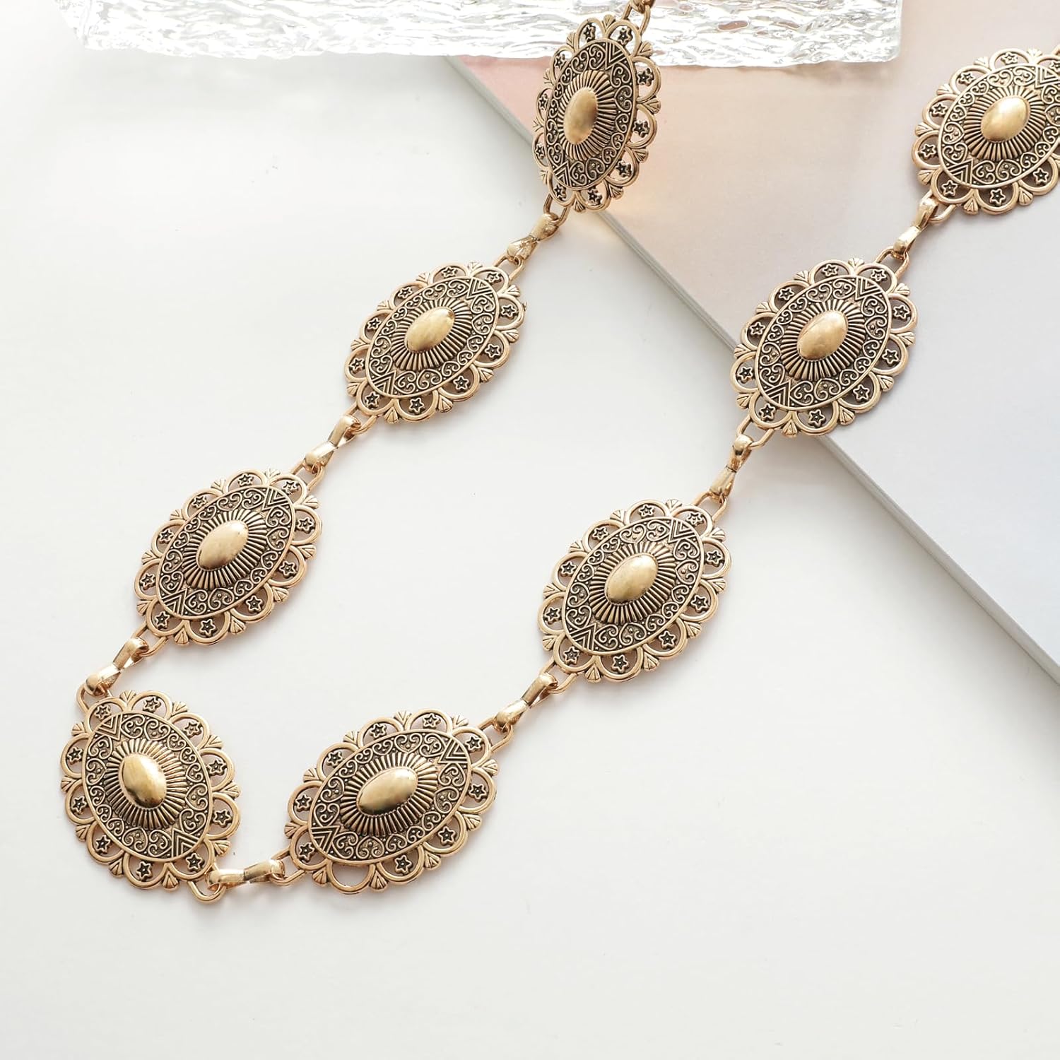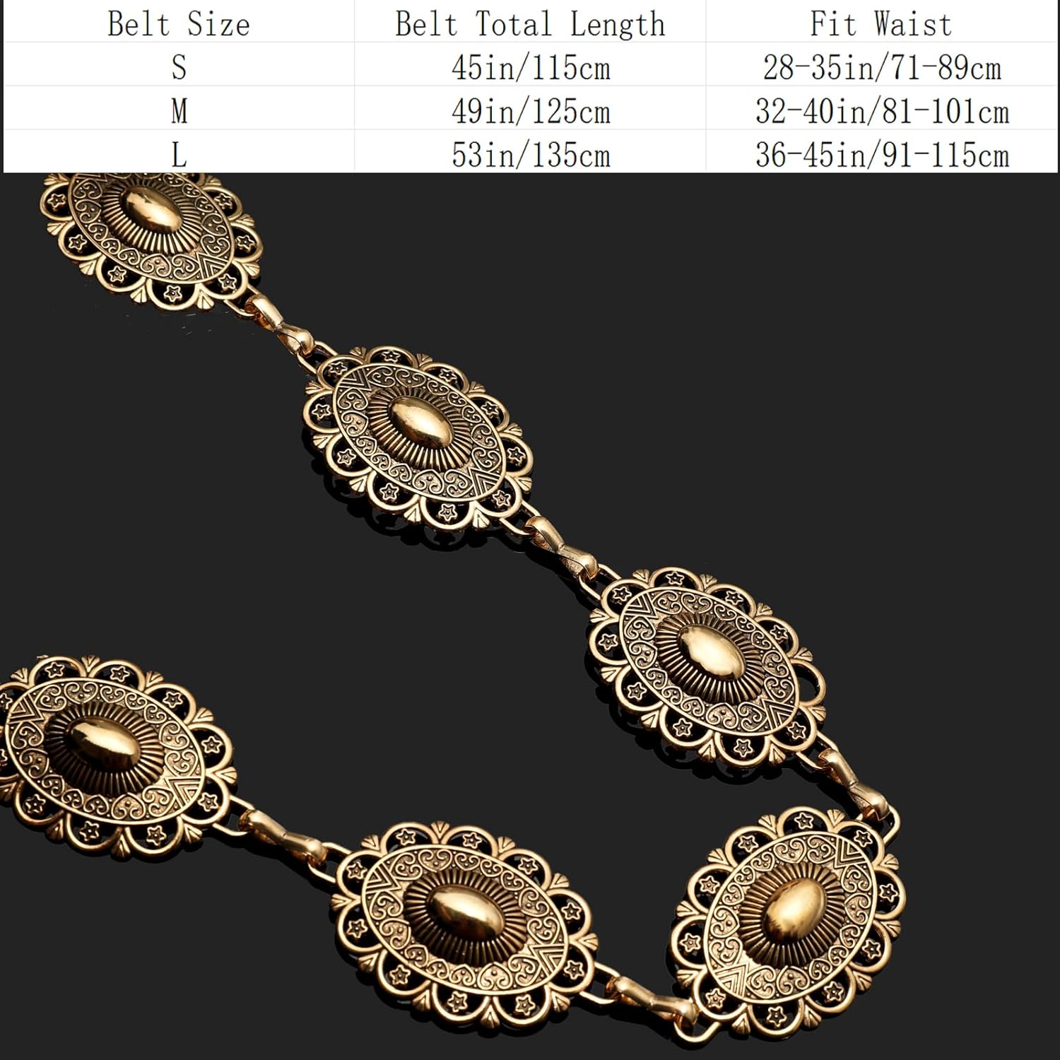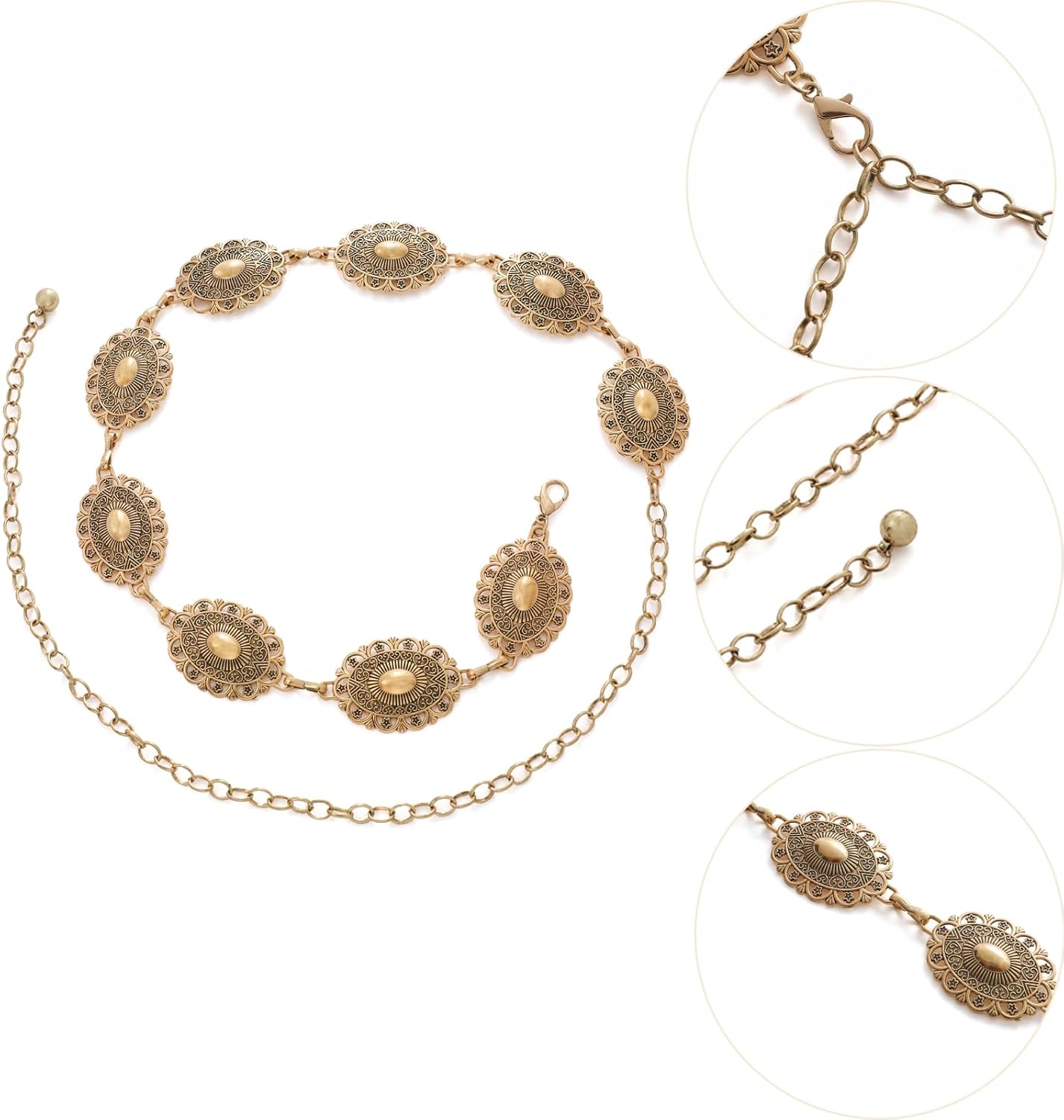 YGR Western Belts for Lady Cowgirl Steel Concho Chain Belts for Attire Denims Trousers Nation Live performance Outfit