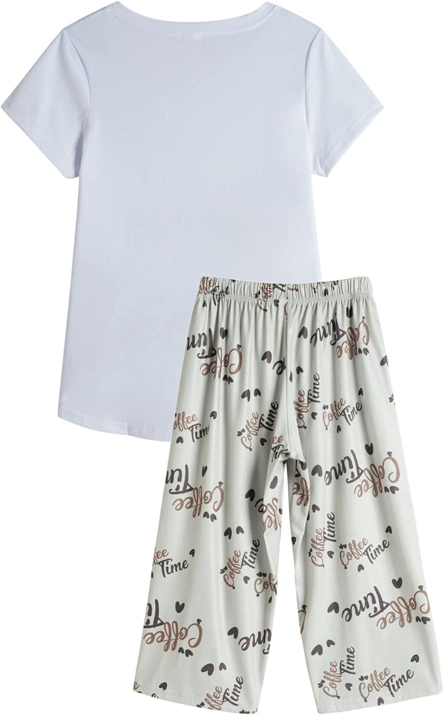 YIJIU Women’s Pajamas Set Short Sleeve Sleepwear Top with Capri Pant Printed Pjs Cute Loungewear Sets