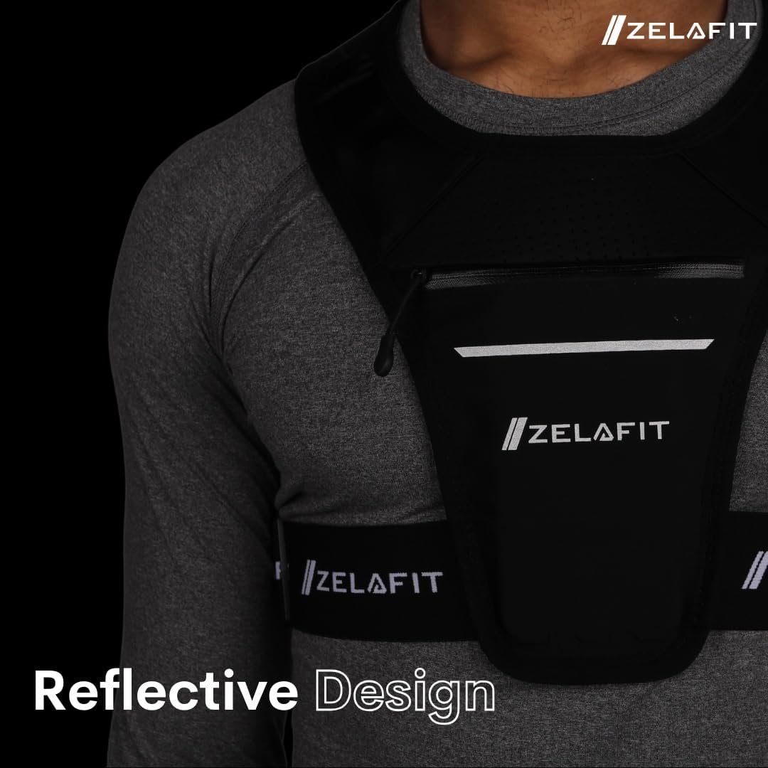 ZelaFit® Running Vest for Women & Men | Running Gear | Running Accessories | Running Essentials | Running Phone Holder | Running Bag | Marathon Essentials | Chest Rig Phone Holder for Running (Black)